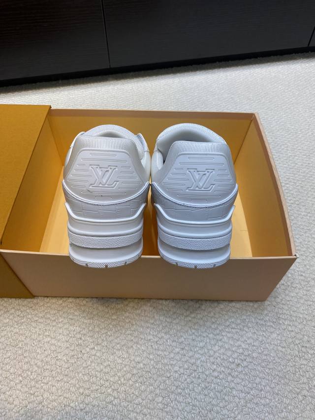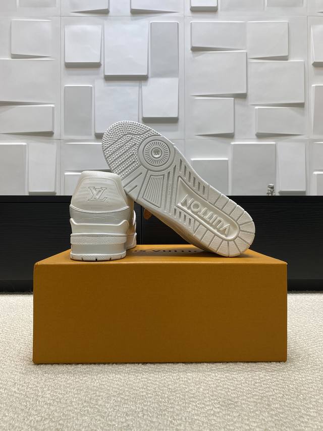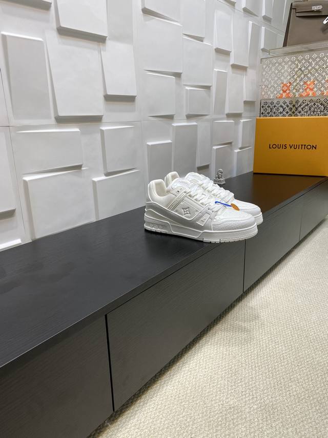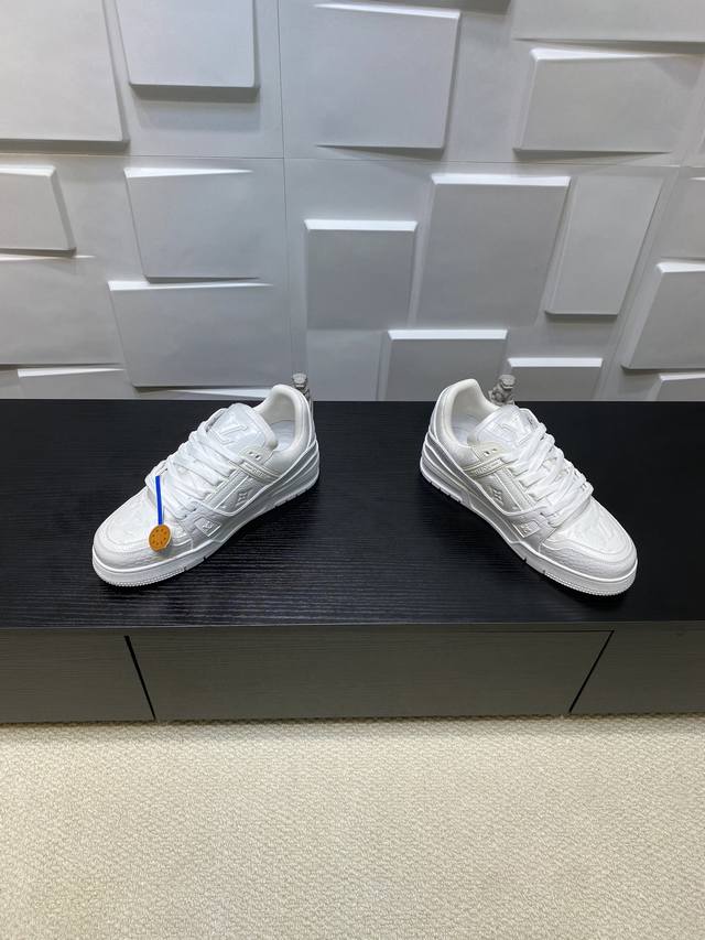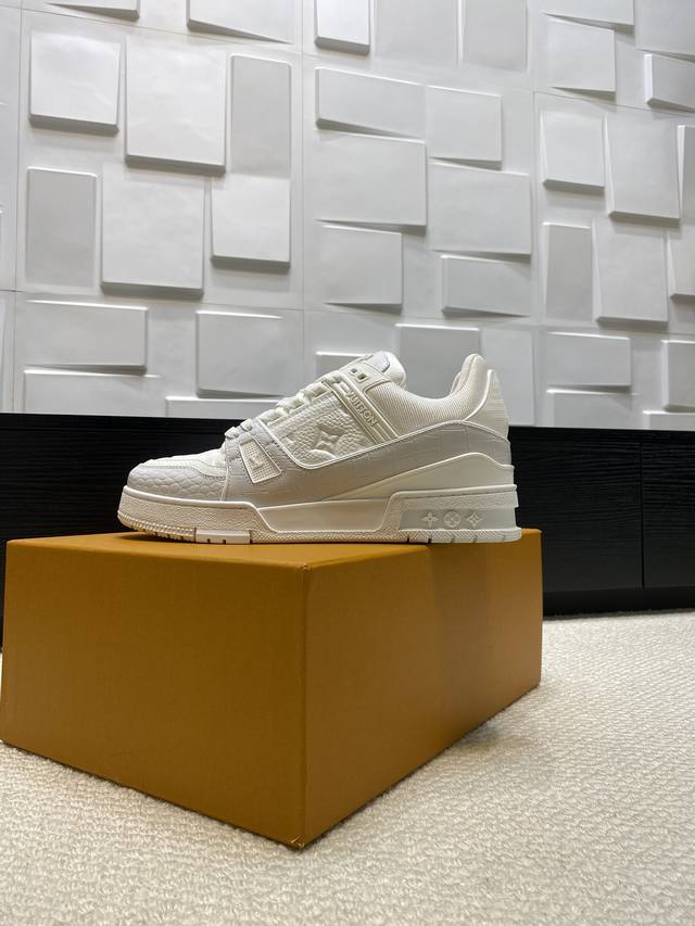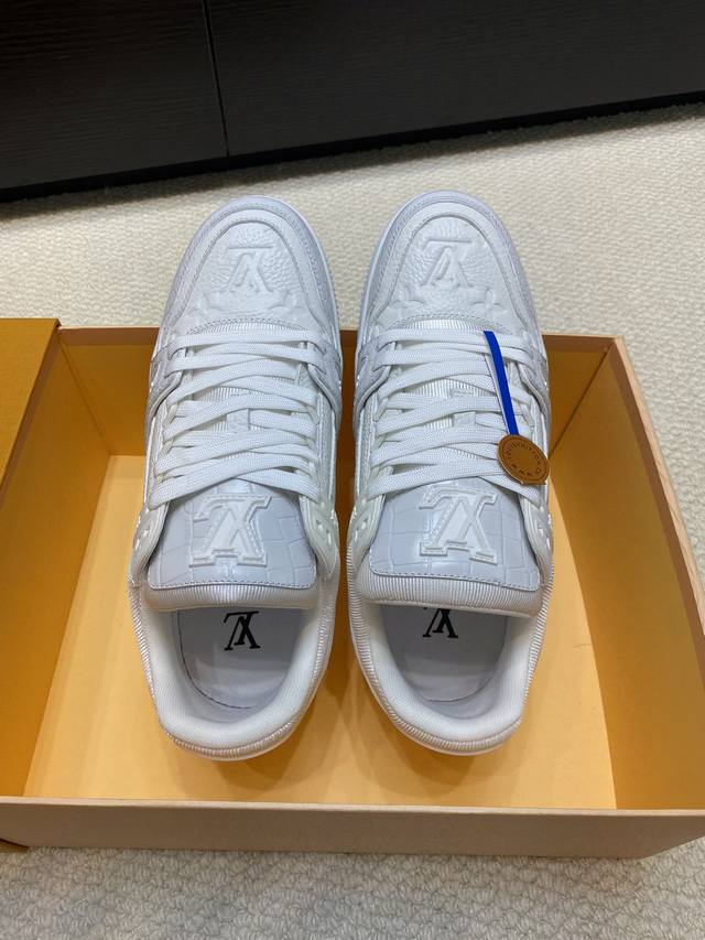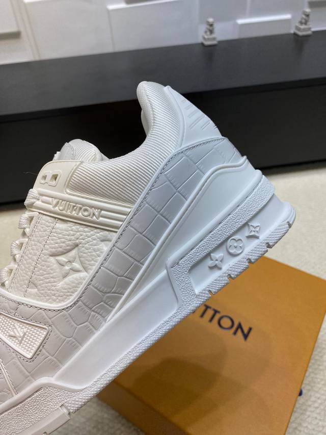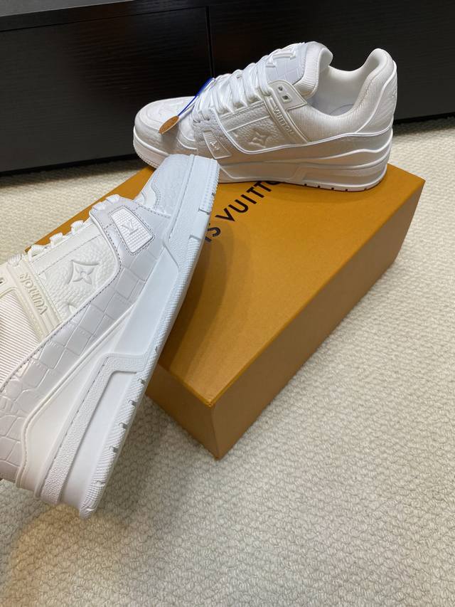 顶级版本: 鳄鱼纹 DDD Lv Tarine路易威登X Tyler 联名款 驴牌 L家 压花 情侣款 休闲 运动鞋 滑板鞋 DDD 原版购入开发 路易威登 X Tyler 合作系列推出 Lv Trainer 运动鞋,延续 Virgil Abloh 基于复古篮球鞋创作的经典设计。牛皮革鞋面融入 Craggy Monogram 压纹和路易威登标识,展现 Tyler 对 Monogram 图案和品牌元素的趣味重构 DDD 配送专柜精美包装 DDD 面料: 原版定制头层牛皮 DDD 内里: 原版定制透气网里 D
