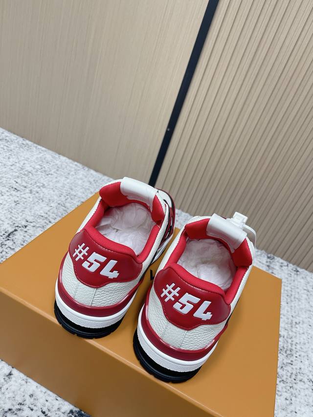 FFF 顶级版本: DDD 情侣款Lv Trainer运动鞋系列,配色超好看,街头且奢华,整体鞋面为小牛皮,质感满分,鞋型修脚,偏长且好看 DDD 顶级莞货,大型台资代工厂P出品, DDD 鞋面独家订制压纹粒面小牛皮 DDD 大底Tpu、模具费2W+ DDD 垫脚聚米微料,透气英伦网布 DDD 细节原版一致 请注意区分市面通货材料 DDD 码数:35-45 女40.男45定做 DDD