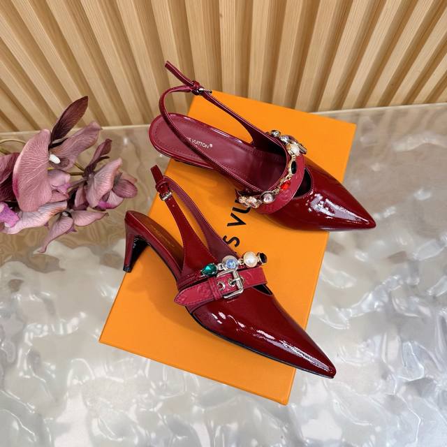 FFF 顶级版本 DDD 26Ss夏季新款 Louis Vuitton 路易威登 Lv Vibe 链条后空平底凉鞋尖头猫跟高跟凉鞋 DDD DDD 本款 Lv Vibe 露跟高跟鞋以柔软羊皮革塑就瞩目构型。尖头设计、皮革包覆鞋跟、装饰性腰带状Monogram帆布饰带与莹泽链条增添瞩目姿彩。可调节后带搭配精巧矩形搭扣。 DDD 鞋面:牛皮 DDD 内里垫脚:羊皮 DDD 鞋底:意大利注塑真皮大底 DDD 跟高:平底 5.5Cm DDD 码数:35-41 40.41定做不退换 DDD