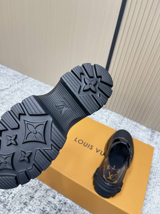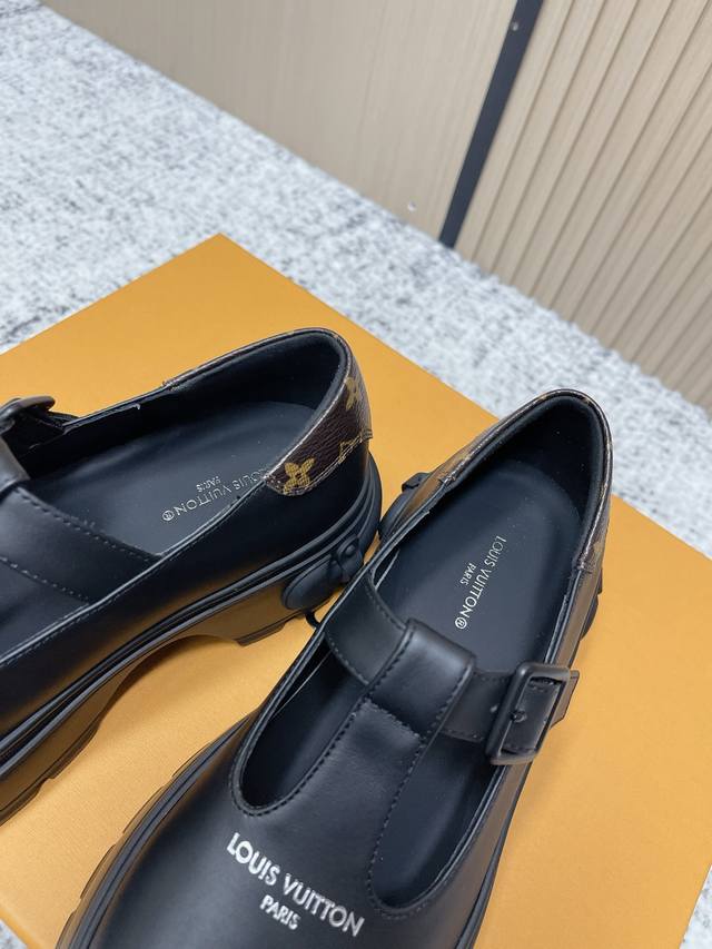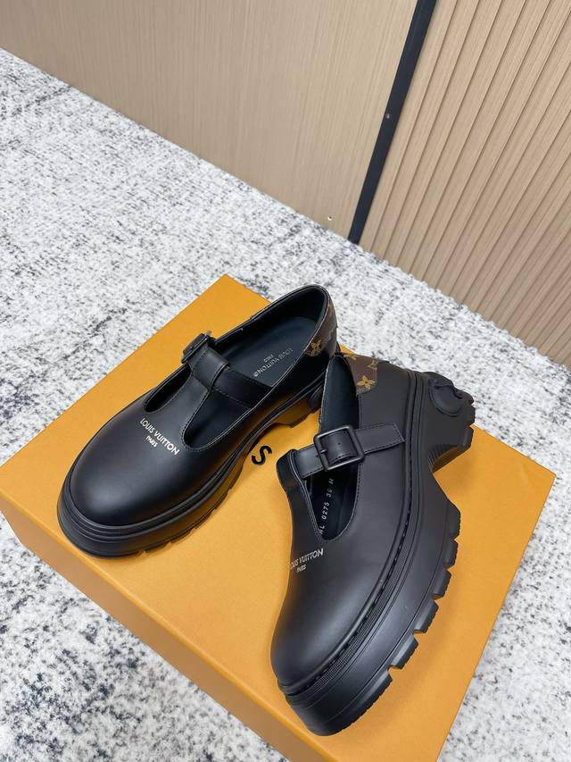 FFF 顶级版本: DDD Lv 26早春新品厚底玛丽珍小皮鞋 DDD 这款黑色厚底玛丽珍小皮鞋,搭配经典T字带和金属扣,复古又实用。厚底设计显高显腿长,鞋底防滑,日常通勤或长时间走路都很Ok DDD 。后跟有Lv老花品牌花纹,细节满分,英伦风+现代感,裙装裤装都能轻松搭配,甜酷Or学院风随心切换!舒适又时髦,姐妹们都能穿~ DDD 鞋面:小牛皮 开边珠 Lv老花 DDD 内里小羊皮 DDD 大底原版开模发泡鞋底 DDD 码数35-39 40.41订做 DDD