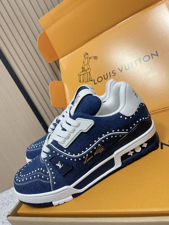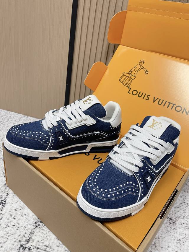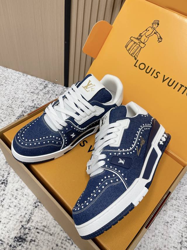 FFF 顶级版本: DDD Lv Trainer~~全新升级版~~经典回归 DDD 男款,滑板鞋,篮球鞋,运动鞋 DDD Lv全新运动系列;复古风视感;拥入家族多方面经典原素;超级帅气~~ DDD 全皮革面料,搭配Lv徽章布面,透气纱网内里,原版大底,原版鞋楦,更多细节对比大货实物完美高端~~ DDD Size:男码39 45 45定做 DDD