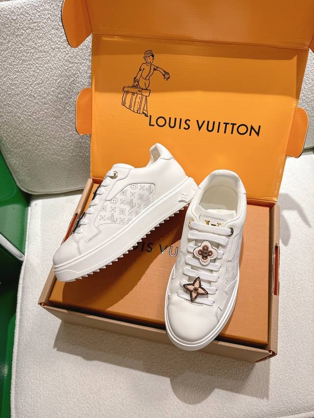 / 顶级版本 K007 Louis Vuitton 路易威登Time Out休闲板鞋 小白鞋 本款Time Out运动鞋拼接牛皮革与 Monogram 丹宁布,与当