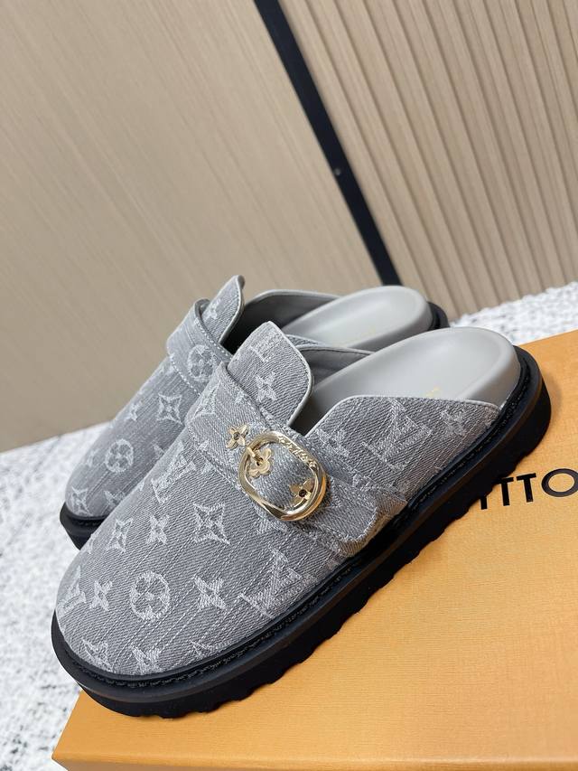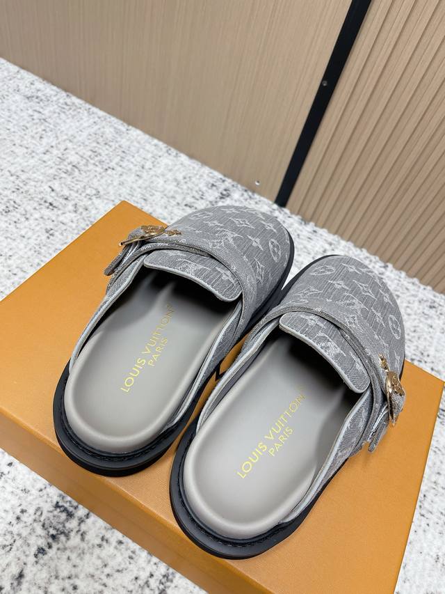 / 顶级版本: Louis Vuitto*Lv 新品情侣款勃肯拖鞋 可可爱爱、脚感简直不要太好 简约又高级 露跟设计 即穿即走 懒人福音 鞋面进口牛皮 进口老花布