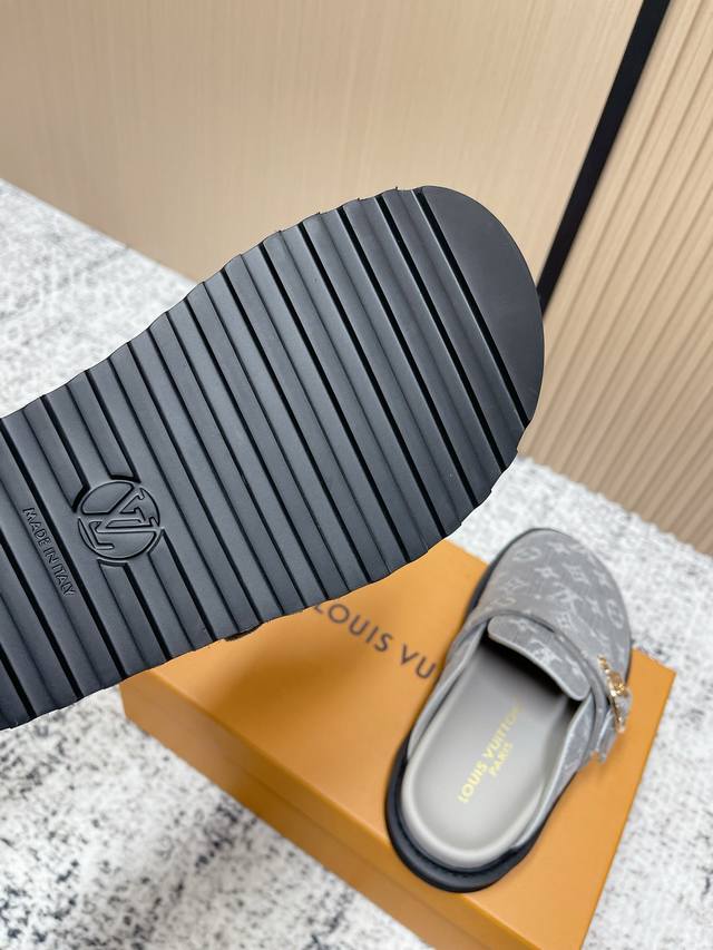顶级版本: Louis Vuitto*Lv 新品情侣款勃肯拖鞋 可可爱爱、脚感简直不要太好 简约又高级 露跟设计 即穿即走 懒人福音 鞋面进口牛皮 进口老花布