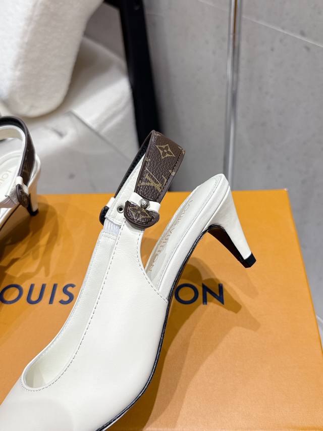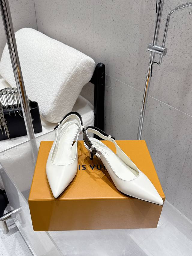 / 顶级版本 Louis Vuitton 路易威登 Lv 25最新 高跟 尖头后空凉鞋 单鞋 鞋面:牛皮 老花皮 垫脚:羊皮 跟高:5.5Cm 鞋底:意大利加厚真皮