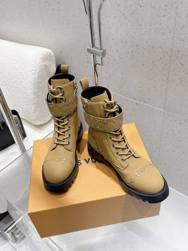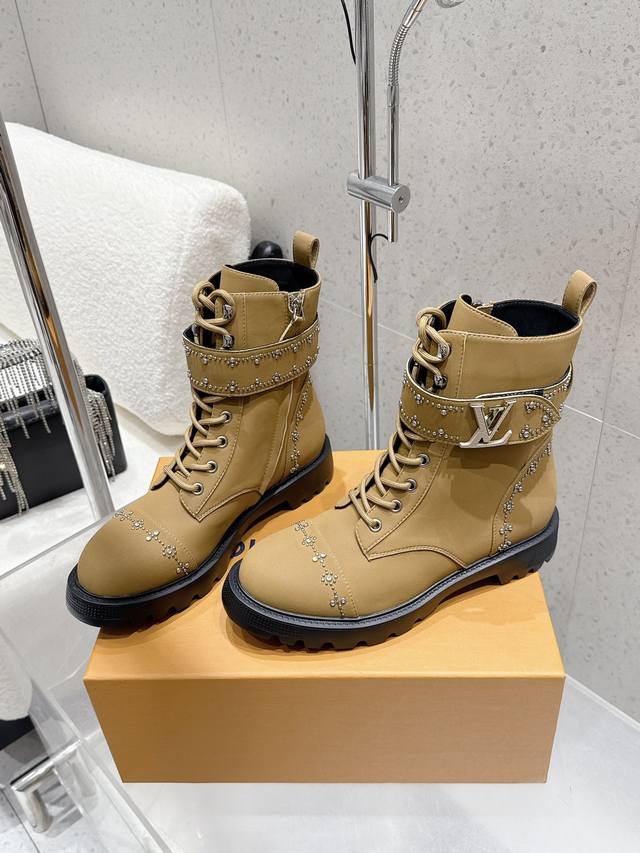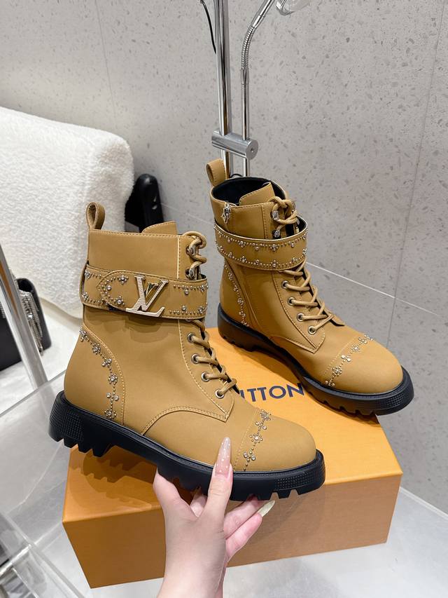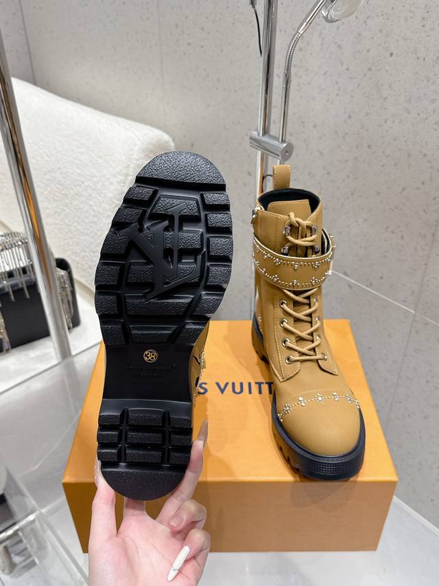 顶级版本 DDD Louis Vuitton 25Ss秋冬新款 Lv 圆头系带马丁靴 短靴 裸靴 DDD 鞋面:牛皮 牛筋皮 DDD 内里垫脚:牛皮 DDD 鞋底:原版开模定制橡胶大底 DDD 码数:女35-39 40 41定做不退换 DDD