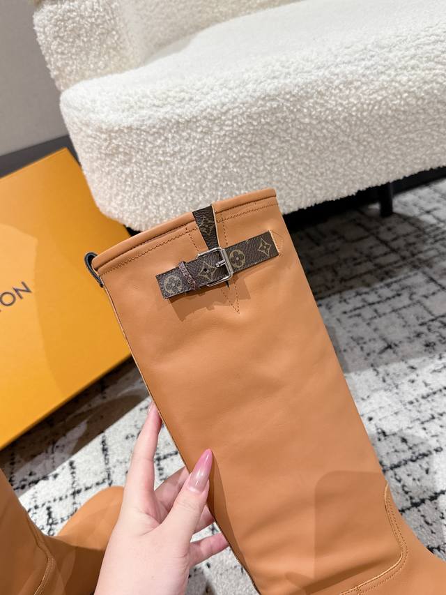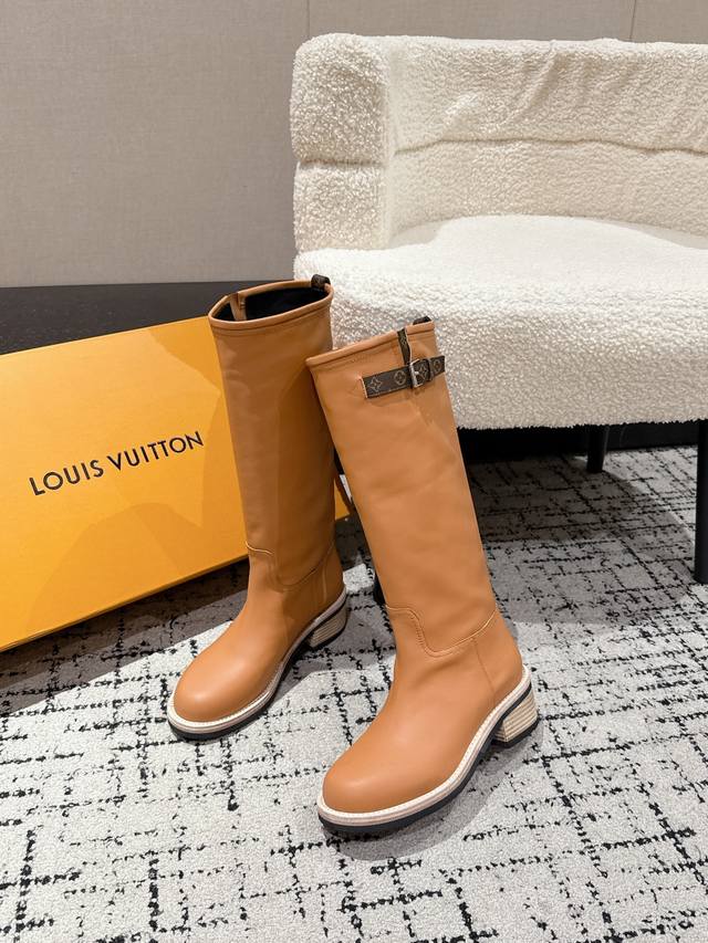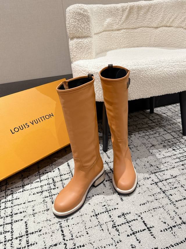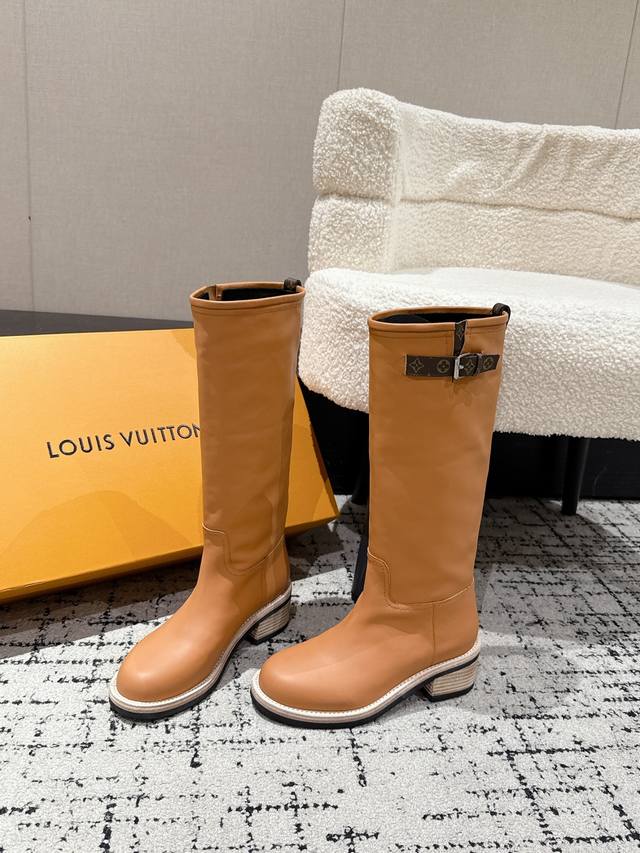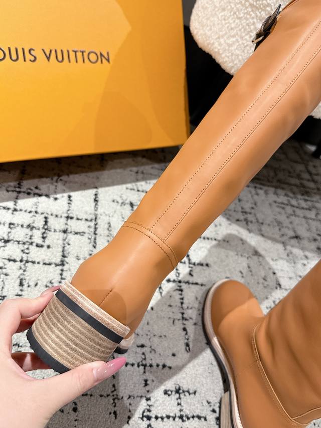 顶级版本 Louis Vuitton Lv 25 Biker 秋冬新款 高筒靴 粗跟一脚蹬 直筒 长靴 厚底骑士靴 本款 Lv Biker 高筒靴以光滑牛皮革塑