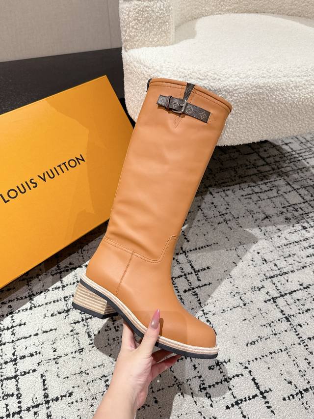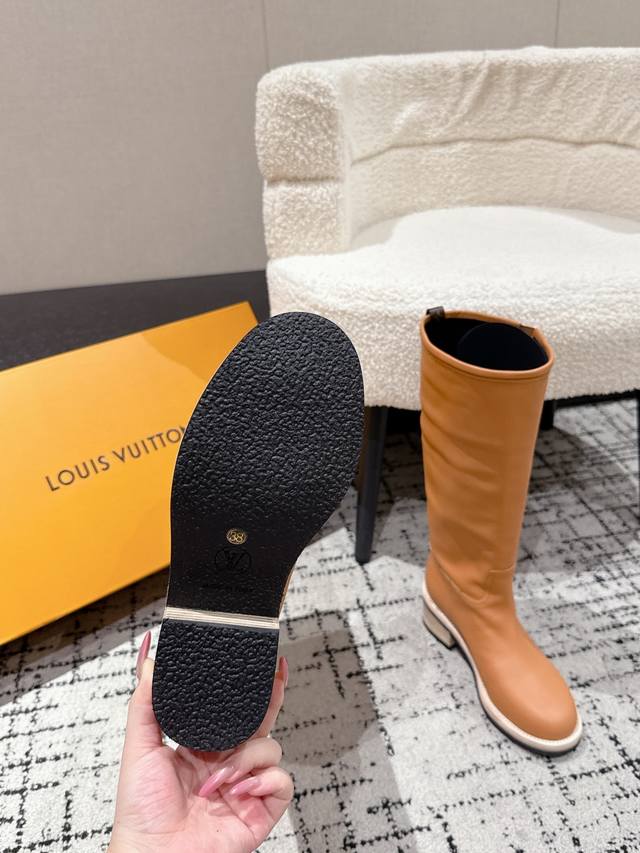 / 顶级版本 Louis Vuitton Lv 25 Biker 秋冬新款 高筒靴 粗跟一脚蹬 直筒 长靴 厚底骑士靴 本款 Lv Biker 高筒靴以光滑牛皮革塑
