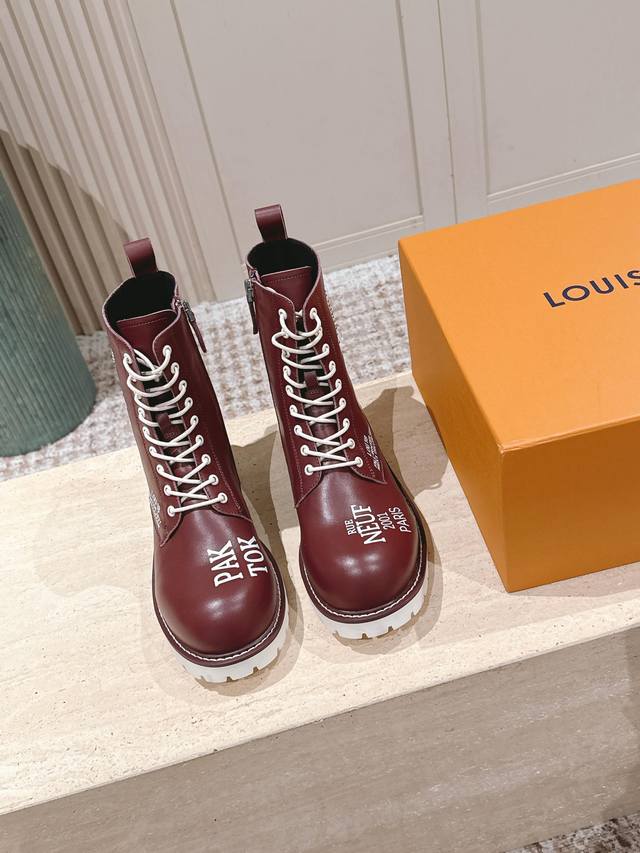 顶级版本: :Lv驴牌 25Ss 新款秋冬厚底马丁靴短靴 楦型百搭瘦脚Yyds.造型立体饱满,气质满满 上脚舒适 非常复古风、气场十足。。。 鞋面:牛皮 内里垫