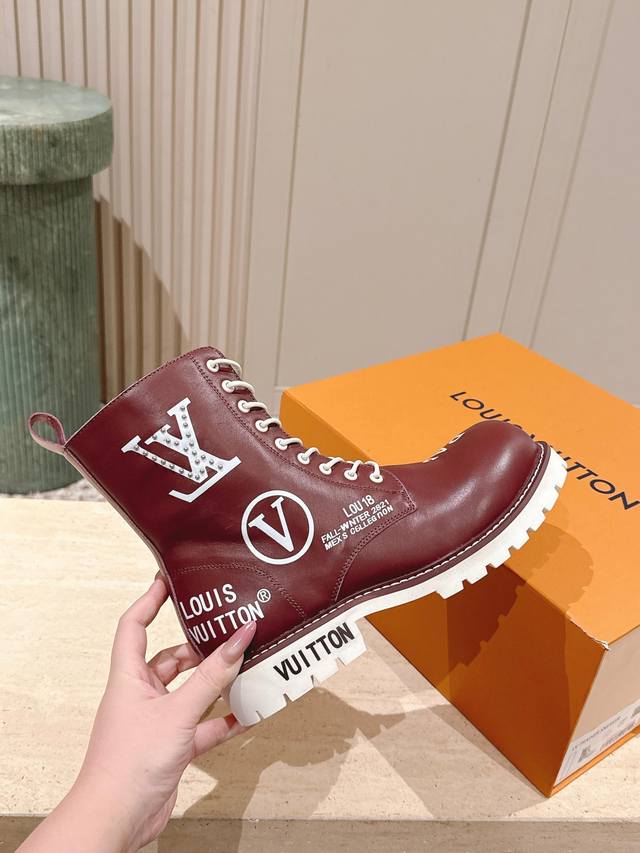 / 顶级版本: :Lv驴牌 25Ss 新款秋冬厚底马丁靴短靴 楦型百搭瘦脚Yyds.造型立体饱满,气质满满 上脚舒适 非常复古风、气场十足。。。 鞋面:牛皮 内里垫
