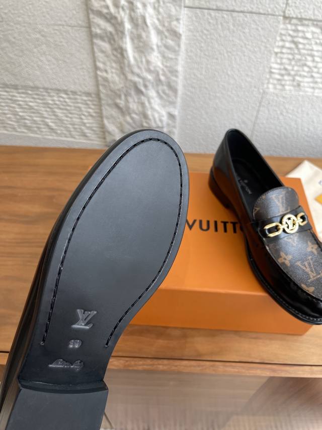 顶级版本: Lv 路易威登 25Ss 秋冬新款 经典款升级版本 平底 乐福鞋 Lv Chess 平底乐福鞋:本款 Chess 平底乐福鞋选用镜面牛皮革,Lv Circle 标识栖身链条中央,重绎经典学院风格设计。多层皮革构筑的一体式外底提升耐磨性。 面料:原版开边珠牛皮 内里:进口牛皮里 大底:原版开模橡胶大底 Size:35-41 40 41定做不退换