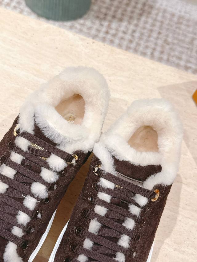/ 顶级版本: :Lv Fw 25 New Arrival~ Lv 25秋冬Time Out运动鞋新品 鞋面融入刺绣工艺,内里皮毛一体材质 精致好看,增高 保暖;太