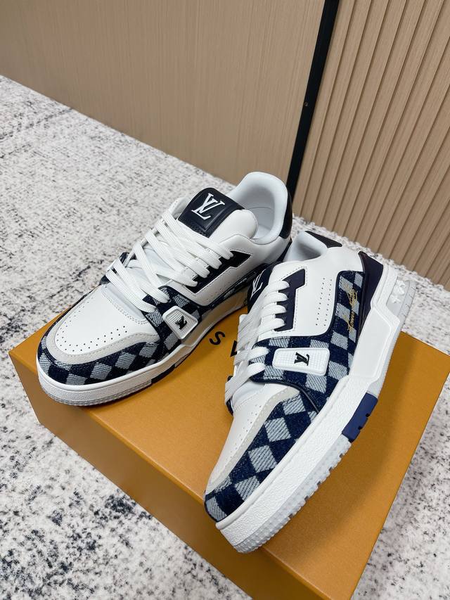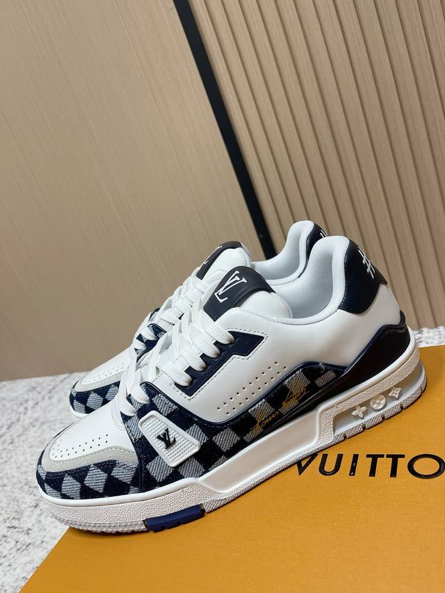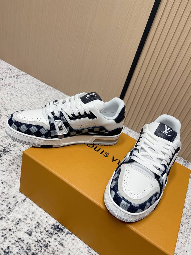 顶级版本: DDD Lv Trainer~~全新升级版~~经典回归 DDD 情侣款,滑板鞋,篮球鞋,运动鞋 DDD Lv全新运动系列;复古风视感;拥入家族多方面经典原素;超级帅气~~ DDD 全皮革面料,搭配Lv徽章布面,透气纱网内里,原版大底,原版鞋楦,更多细节对比大货实物完美高端~~ DDD 35 40女款 39 45男款 DDD