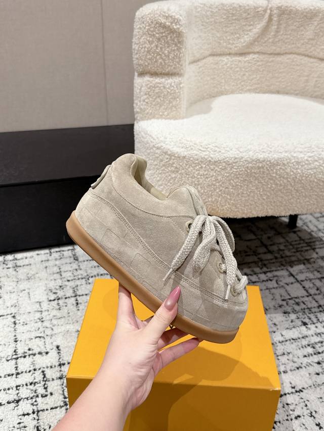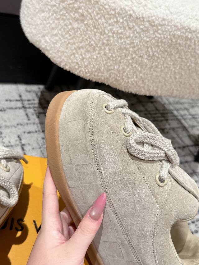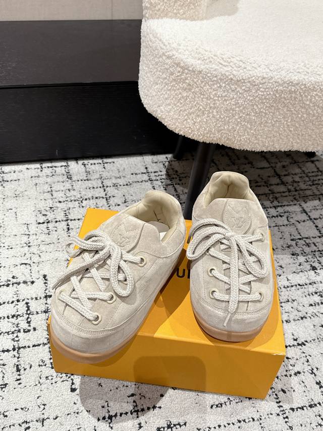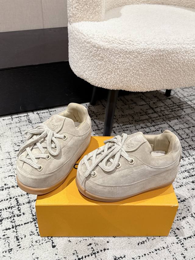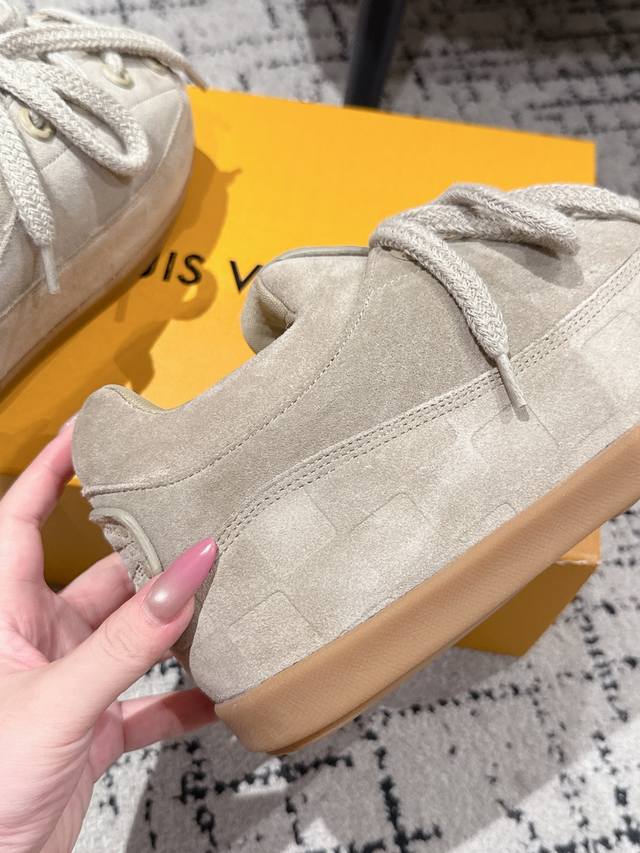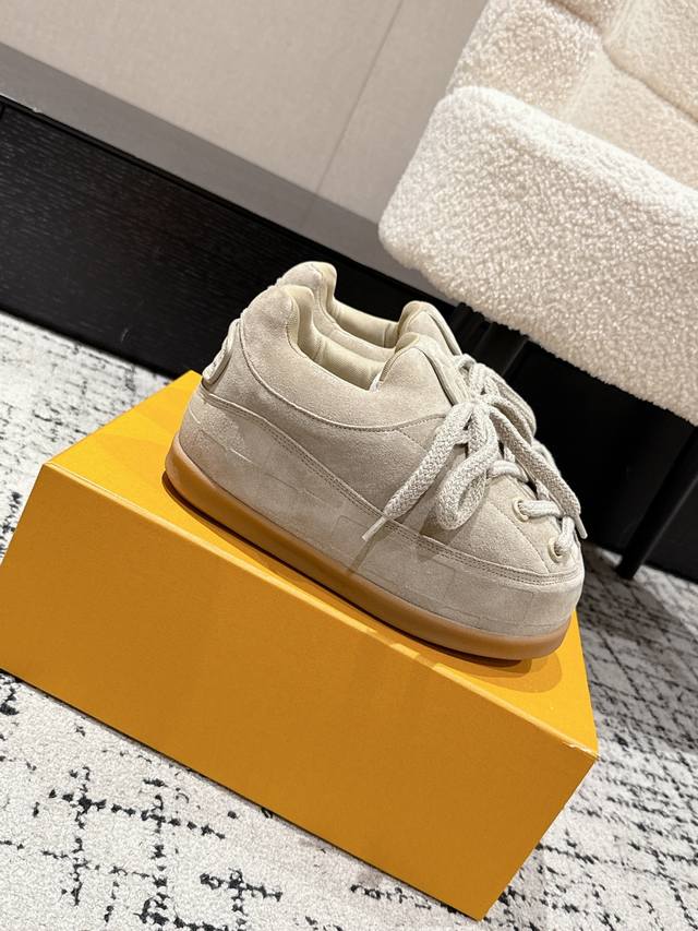 顶级版本 Lv X Ingo联名款 胖丁 阿甘鞋 厚底 情侣款 休闲 运动鞋鞋 原版购入开发 做货 Lv Yeti 系带鞋出自 Lv Yeti 系列,以前卫笔触融合日式“小脚”时尚美学与路易威登经典元素,巧妙致意入室脱鞋的日本传统文化。绒面牛皮革局部压印 Nigo 重绎的 Damier 图案,舒适便鞋构型彰显街头风范 配送专柜精美包装 面料: 原版进口头层牛皮 内里:原版定制透气网里 鞋底:原版开模防滑Tpu材质 Size: #女款35-42男款38-46 女款41 42 男款38 45 46 定做