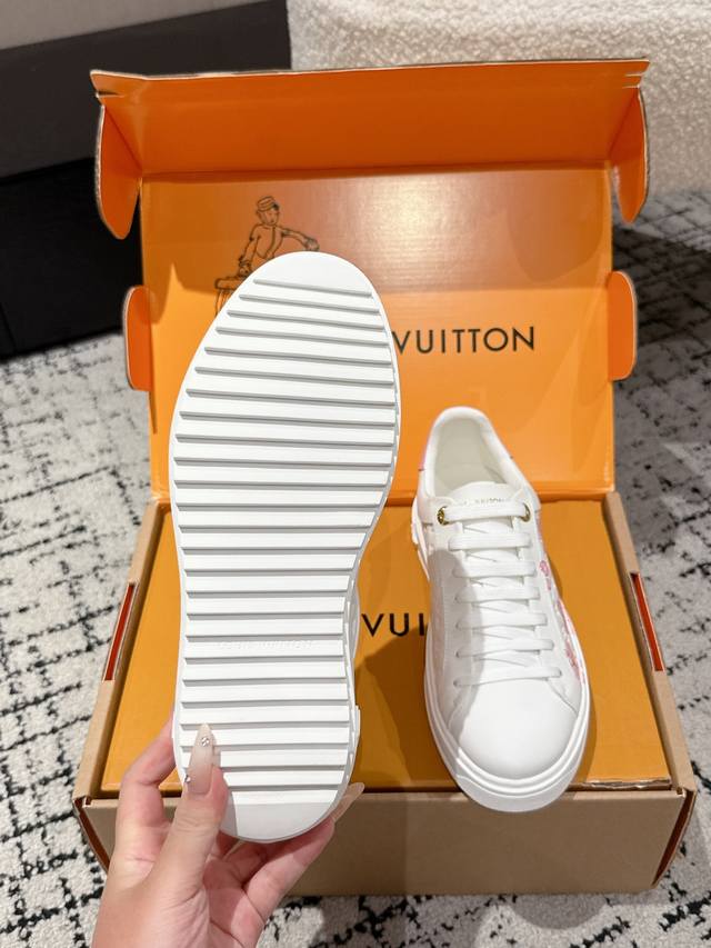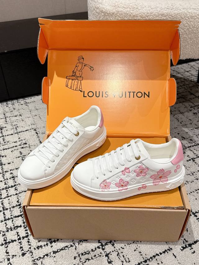原版购入开发 做货 本款 Time Out 运动鞋出自路易威登 X 村上隆复刻系列,展露生机盎然的运动风尚。素面牛皮革点缀经典 Monogram 元素,Cherry Blossom 印花与鞋后的明媚饰边注入灵动笔触。Monogram 花卉于加厚橡胶外底绽放品牌风华