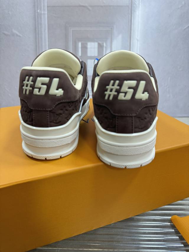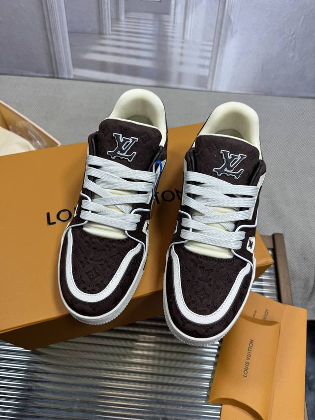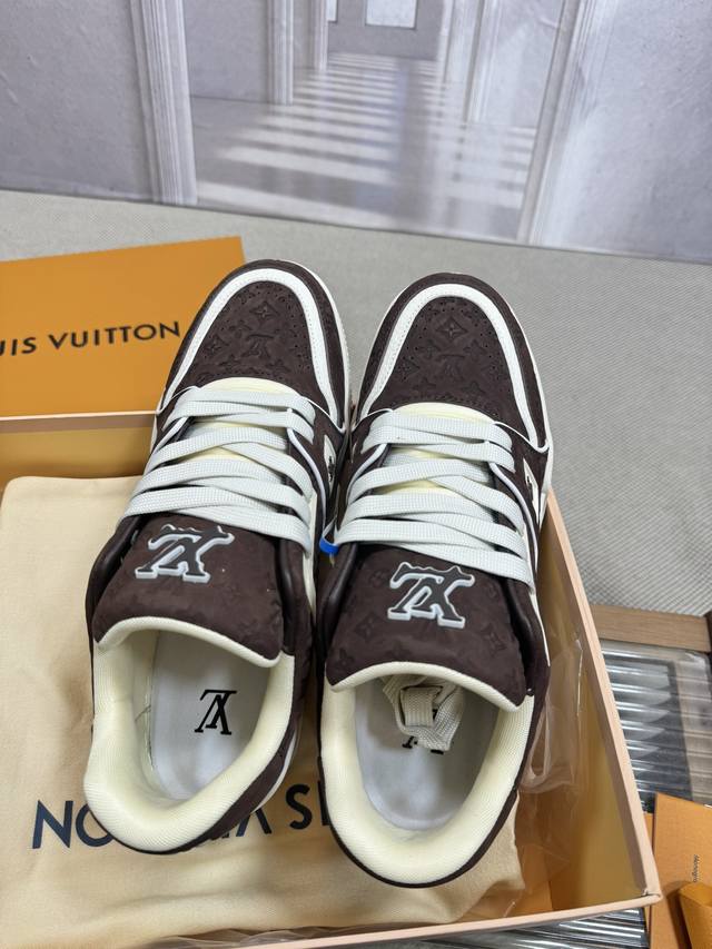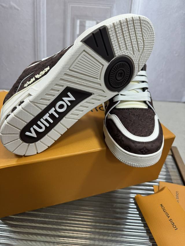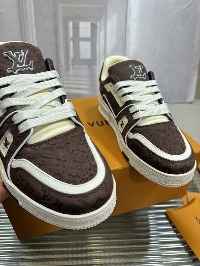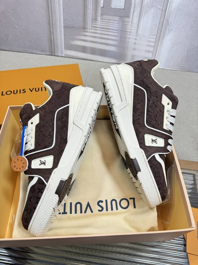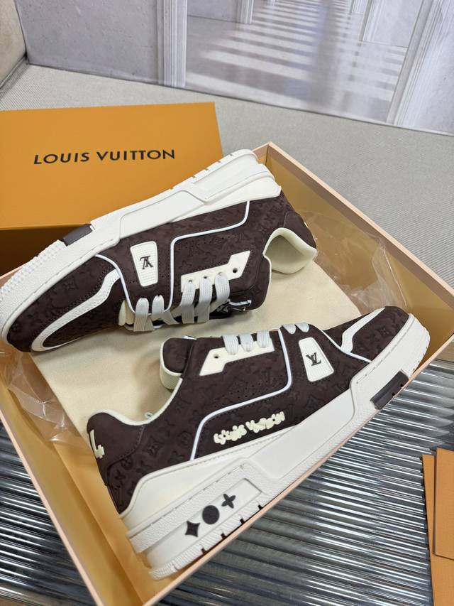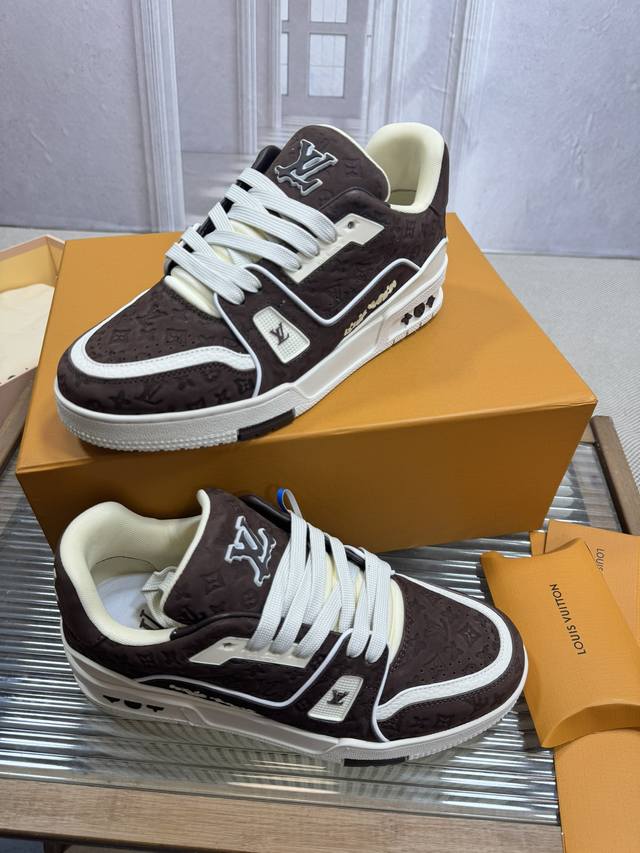 顶级版本Lv~Trainer路易威登 By Virgin Abloh最好看的运动,品牌力推新品, 官网限定款复古篮球运动! 高帮低帮均花血本购入原版1:1精准复刻、细节很无敌、诚意满满、进口定制原版牛皮,原版一致套包做法,细节百分百还原、私模定制原版一体成型Tpu大底、区别于别家、, 没有原版是开不出这效果的! L历年来最好看的鞋子、千万不要错过! Size:女款35-40 男款39-45 38 46 注4730定做不退换
