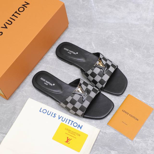 厂价 l*V驴牌 经典爆款镂空拖鞋 简约大气 质感高级 镂空大Logo标志 颇具品牌辨识度 面料采用定制小牛皮 内里垫脚均为羊小皮...