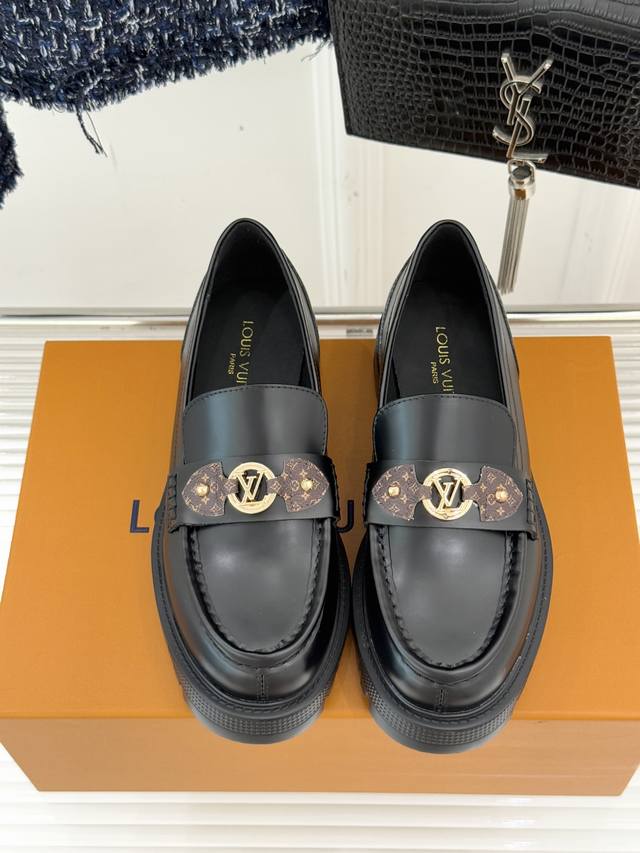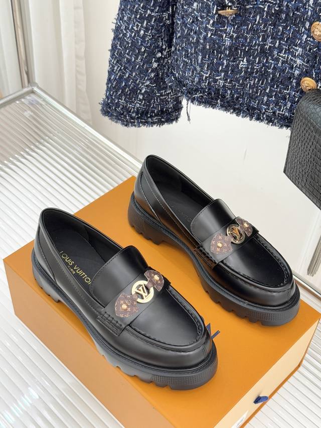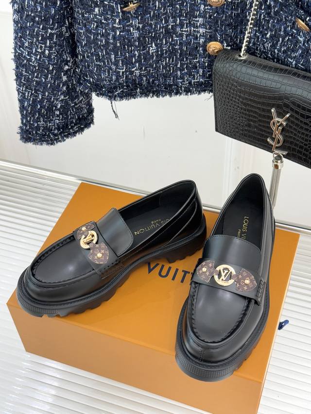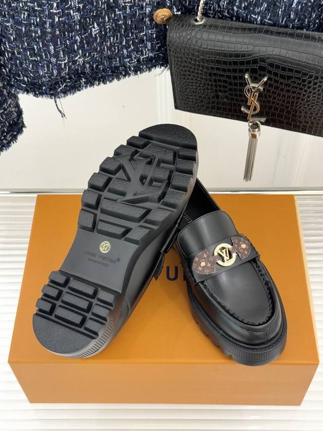 顶级驴牌新品 经典老花皮厚底休闲乐福鞋 超级耐看 细节好到爆 上脚非常舒适 面料采用原版小牛皮 内里垫脚均为羊皮 原版开模定制防滑大底 Size:35-41 [40 41定制]