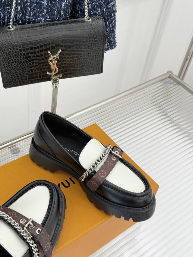 顶级驴牌新品 经典老花皮带链条厚底乐福鞋 超级耐看 细节好到爆 上脚非常舒适 面料采用原版定制小牛皮 内里垫脚均为羊皮 原版开模定制防滑大底 Size:35-41 [40 41定制]