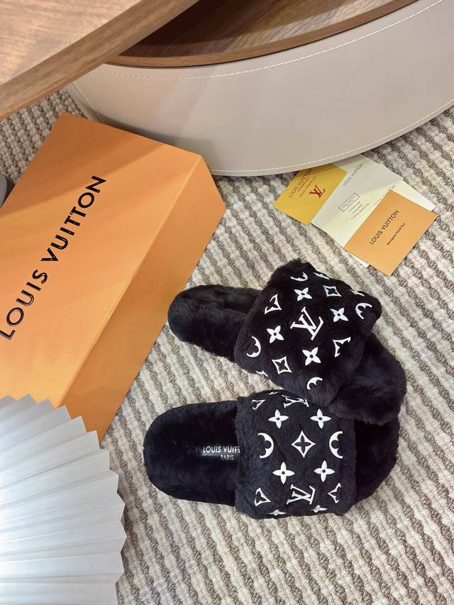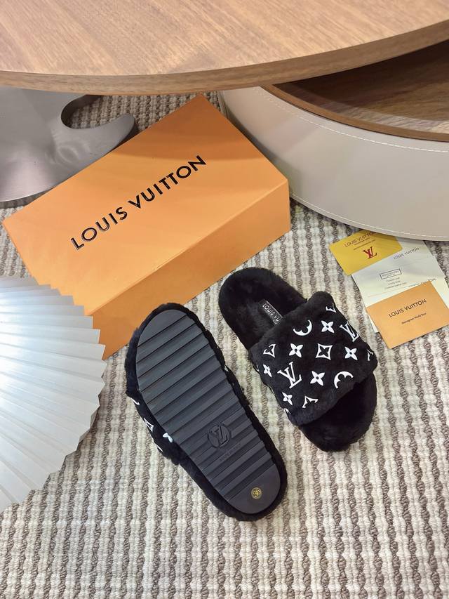 2025秋冬新款Louis Vuitton 路易威登 Lv钱包羊毛拖鞋魔术贴懒人毛毛厚底拖鞋 当Lv的经典基因撞上秋冬的柔软暖意,这双毛拖注定要成为时髦精的秋冬本命单品。一眼沦陷的 是那抹自带贵气的设计巧思。钱包元素的灵感融入 时髦又复古感!仿佛把精致收纳的优雅穿在了脚上,标志性的Monogram纹路若隐若现,在柔软绒毛的包裹下更显低调高级,每一步都踏出品牌独有的经典气场。触感更是让人无法抗拒 优质绒毛浓密蓬松。像踩进刚晒过的云朵里 从脚尖暖到心底。 鞋面:羊毛 内里垫脚:羊毛 鞋底:开模防滑橡胶大底 码