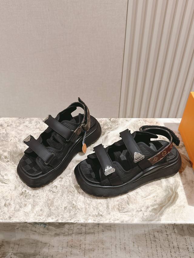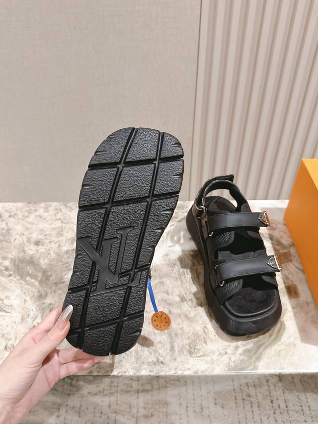 / 225 驴家新品 New Arrival~Lv春夏厚底漆皮水台凉鞋.单宁色搭配的牛漆皮皮质,也太出彩了!性感舒适,拉满了夏日美鞋能给的满分情绪价值.凉鞋的造型也