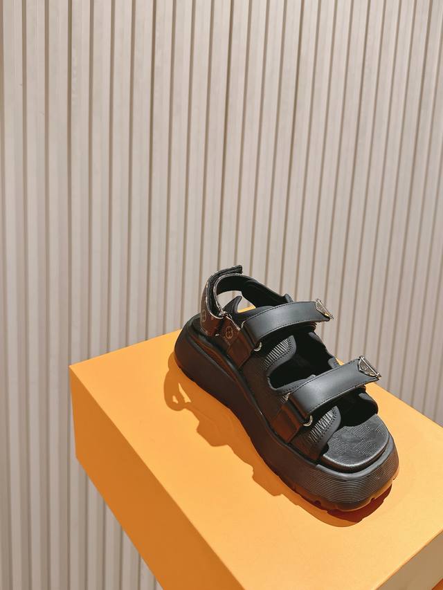 225 驴家新品 New Arrival~Lv春夏厚底漆皮水台凉鞋.单宁色搭配的牛漆皮皮质,也太出彩了!性感舒适,拉满了夏日美鞋能给的满分情绪价值.凉鞋的造型也很乖巧好看呀! 羊皮内里,增高厚底7.5公分 Size 35-41 全套专柜同步包装!