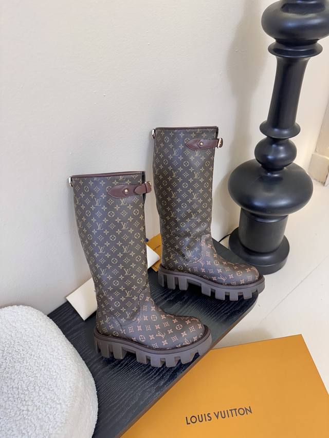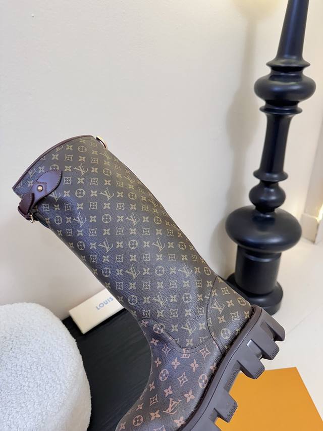 / 25Fw秋冬新款Louis Vuitton Lv Beaubourg高筒靴老花吊坠骑士靴厚底侧拉链长靴 本款 Lv Beaubourg高筒靴取材柔软粒面羊皮革,