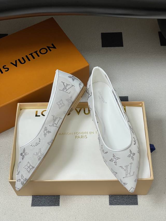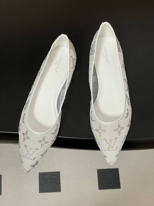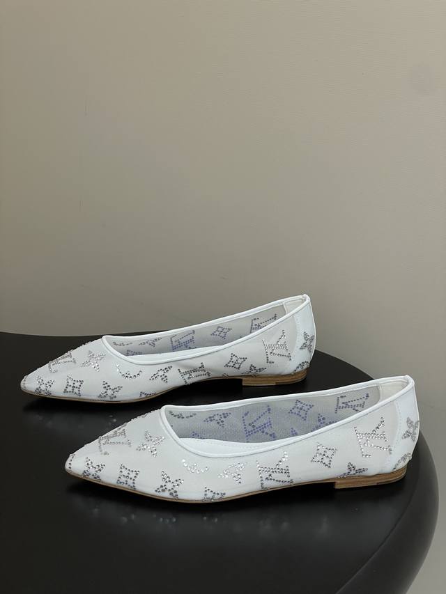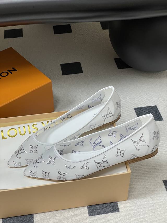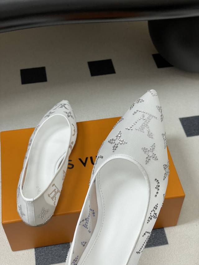 25Ss夏季新款 Louis Vuitton 路易威登 Lv Gala 高跟鞋网纱钻面仙女鞋网面烫钻平底单鞋Bing...Bling...网纱水晶钻 DDD 本款 Gala 高跟鞋为网格鞋身刺绣璀璨莱茵石Monogram 图案,成就适宜夜间出行的雅致之选。鞋面流畅线条与纤细高跟相得益彰。细腻 DDD 皮革外底装点金属Lv 字母装饰。 DDD 鞋面采用了透气的网纱材质,这种材质不仅能让脚部在穿着时保持相对透气舒适,同时也让鞋面上的水钻装饰更加醒目亮眼;内里羊皮,贴合脚部肌肤,提升穿着的舒适体验! DDD 尖