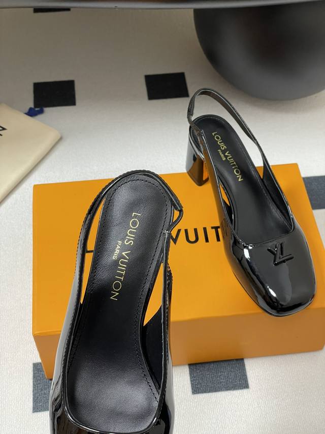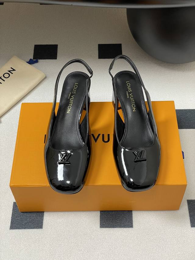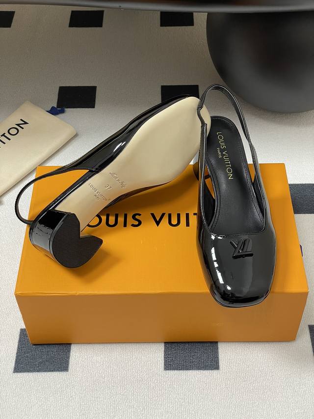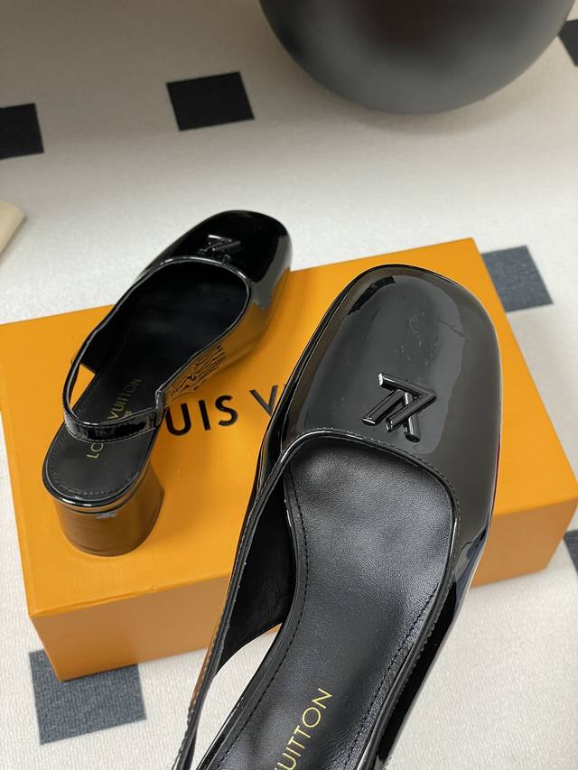 25Ss早春新款Louis Vuitton Lv Swing 高跟鞋最火最新金属跟玛丽珍后空粗跟凉鞋字母标高跟单鞋 选用柔软 皮革塑造易于穿脱的设计,以利落线条彰显典雅风范。V形镂空方跟及其莹泽内里树立辨识度,鞋头Lvtwist装饰点睛考究细节 可爱的圆头造型搭配Lv标志-精致又好看,粗跟脚感特别的好穿舒适。经典百搭单品! 原版开模V型金属跟! 鞋面:小牛皮 牛漆皮 内里垫脚:羊皮 鞋底:意大利A级真皮大底 跟高:5.5Cm 码数:35-39 40.41定做不退换
