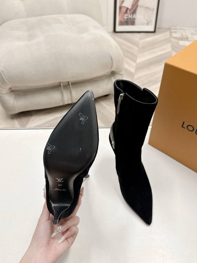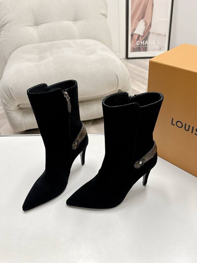 Louis Vuitton Lv 25 秋冬最新 Swing 高跟短靴 侧拉链短靴字母扣及踝靴 选用柔软...