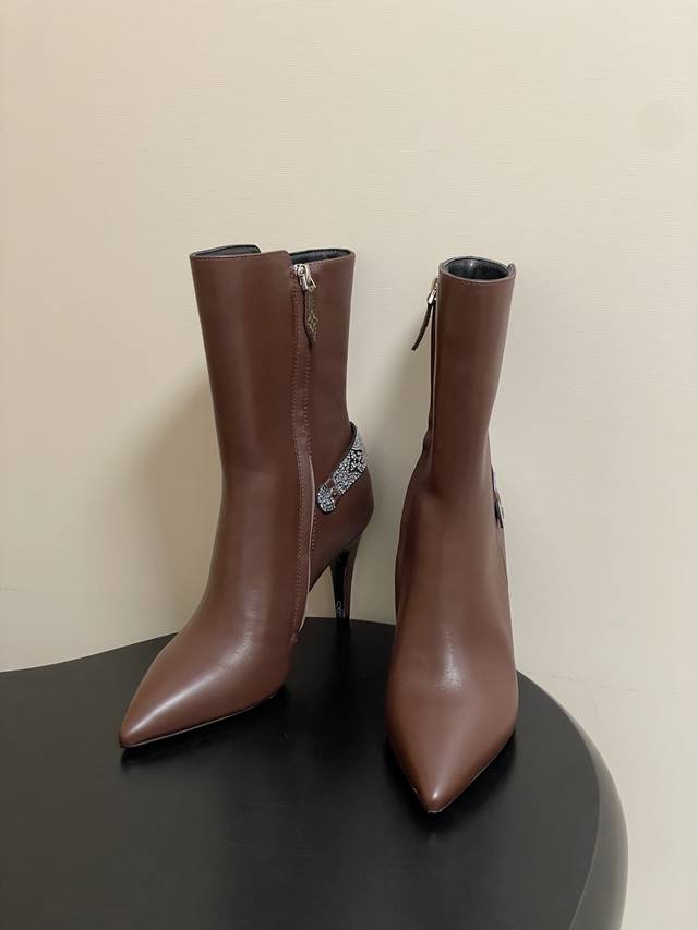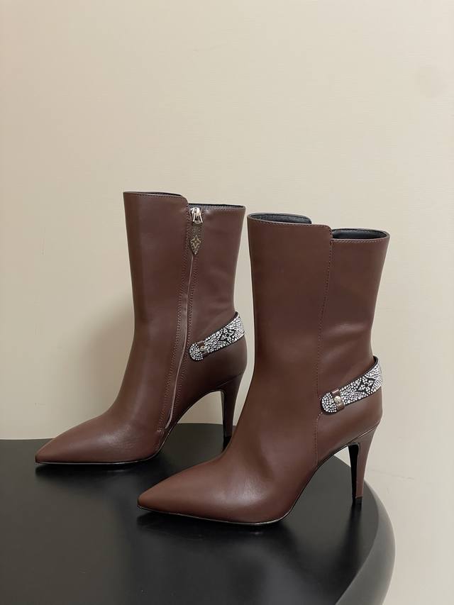 25Ss早秋新款Louis Vuitton Lv Legacy 及踝靴尖头高跟短靴侧拉链老花皮带短靴 本款 Legacy 及踝靴取材光滑牛皮革,搭配宛若品牌传统