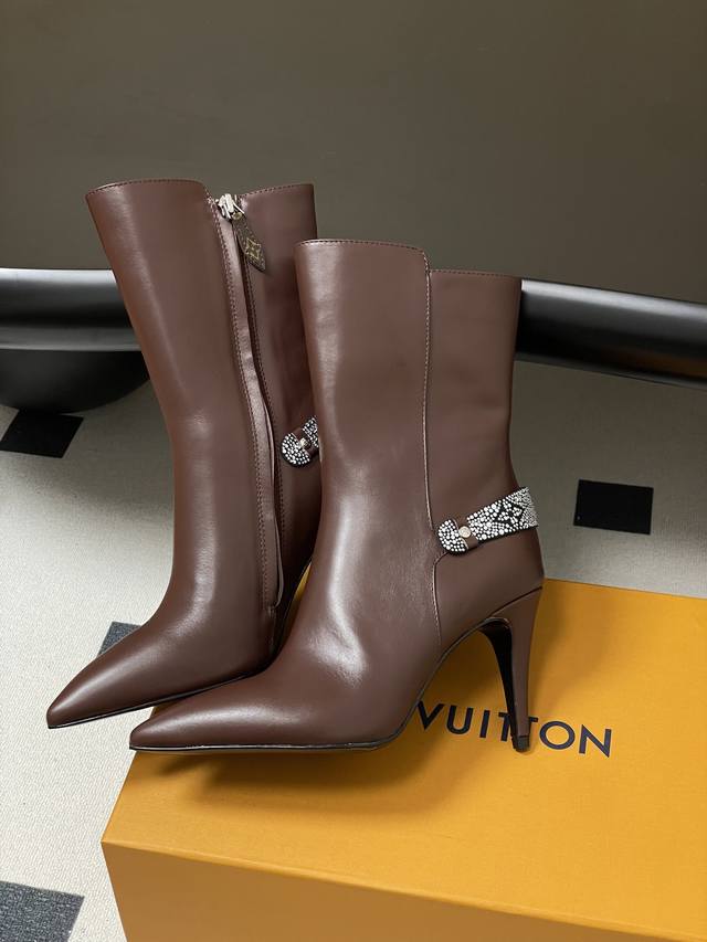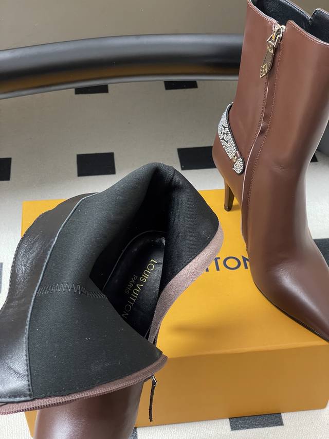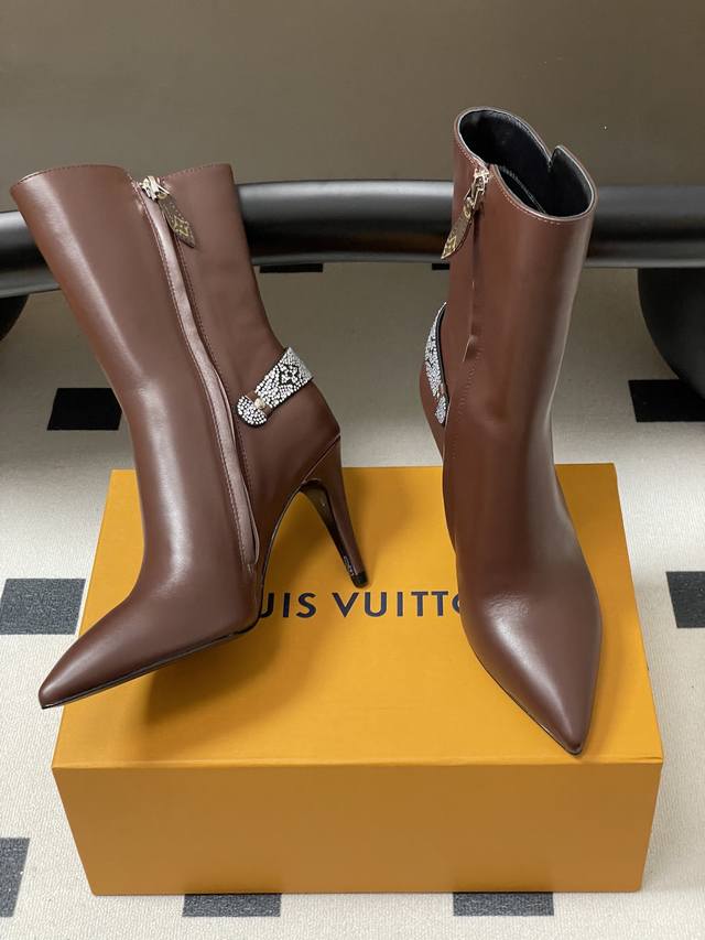 / 25Ss早秋新款Louis Vuitton Lv Legacy 及踝靴尖头高跟短靴侧拉链老花皮带短靴 本款 Legacy 及踝靴取材光滑牛皮革,搭配宛若品牌传统