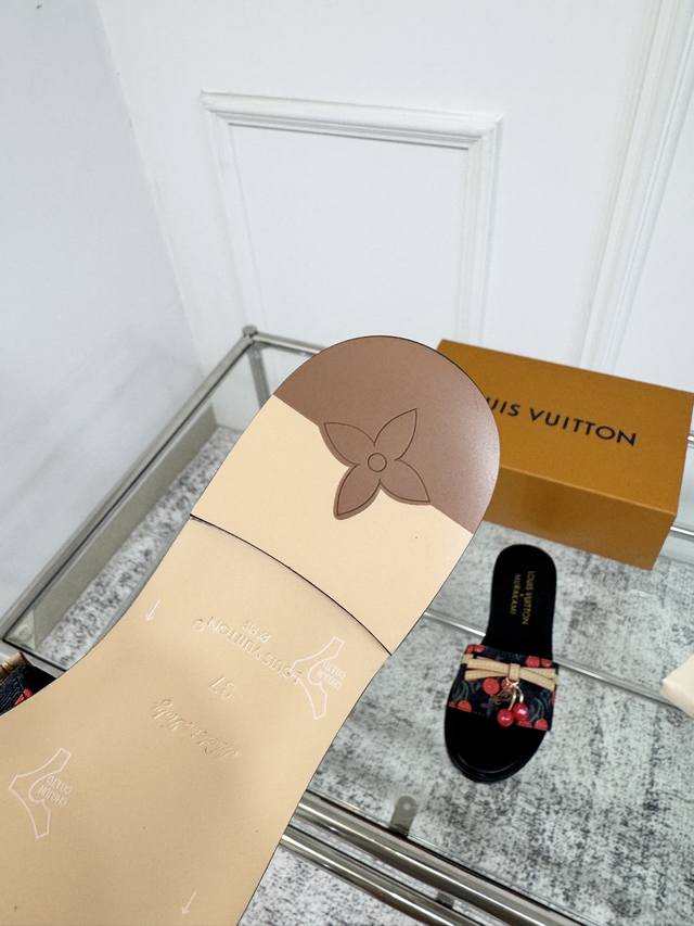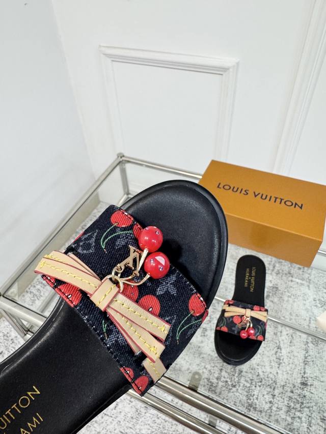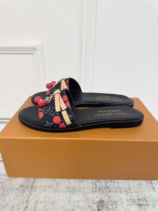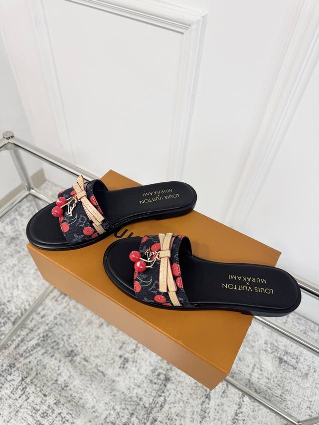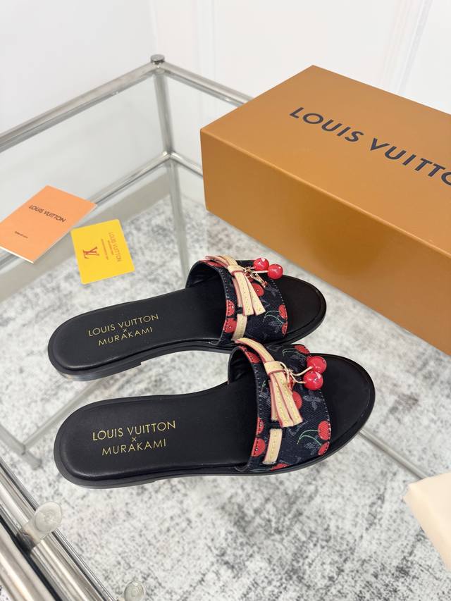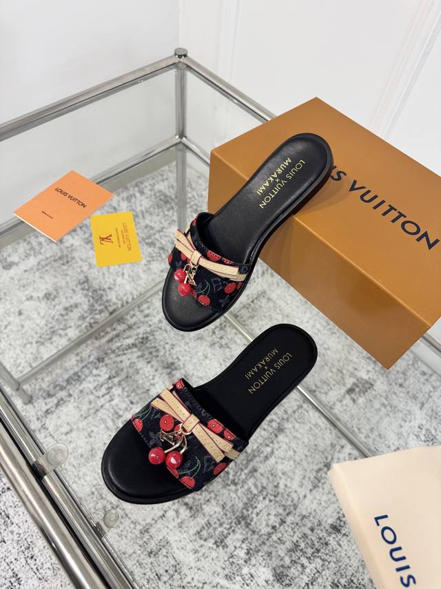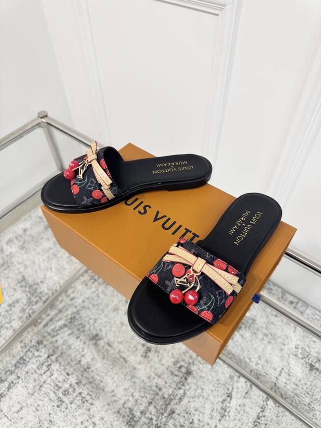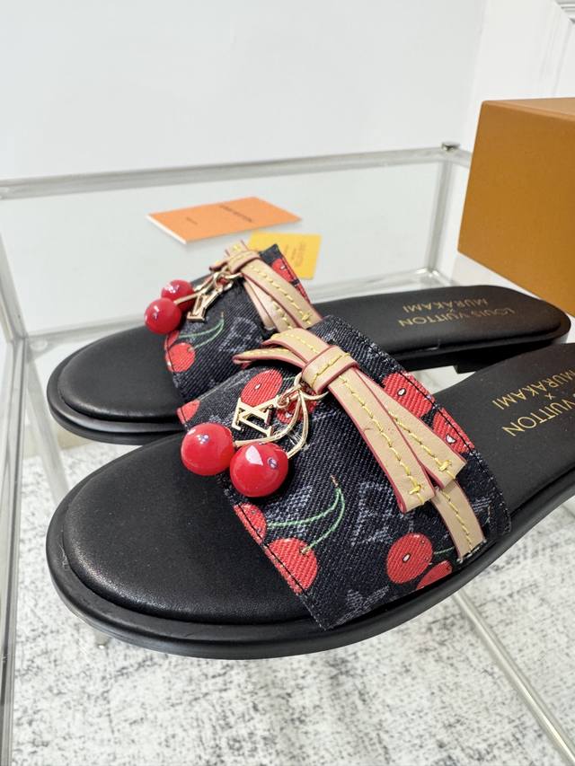 25Ss春夏新款 Louis Vuitton 路易威登 × 村上隆第三篇章樱桃系列 Lv X Tm Lily 凉拖鞋经典老花元素搭配樱桃吊坠平底凉拖鞋