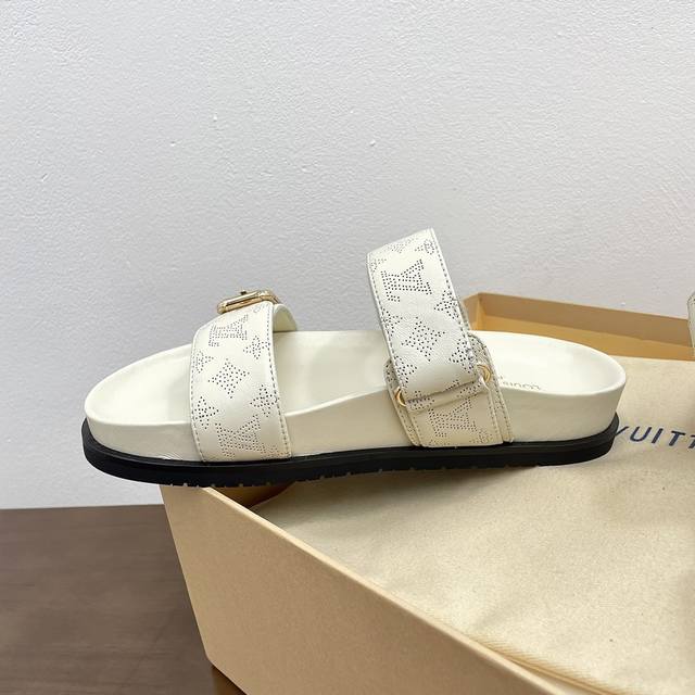 / 420 顶级版本Louis Vuitton 路易威登 春夏最新爆款镂空字母厚底双带扣拖鞋 鞋面:牛皮 大底:Tpu橡胶真皮沿条 鞋码: 35-39 40 41定
