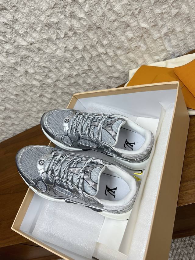 G516 Louis Vuitton 驴牌 25Ss秋冬新款 Olympia系列 情侣款 银角大王 休闲鞋 运动鞋 DDD 本款 Olympia 运动鞋融合网格面料与金属质感合成皮革等科技面料,以利落简约设计重绎经典跑鞋设计。 DDD 轻盈 Eva 外底成就舒弹穿着体验。Monogram 压纹与 字母等丰富细节树立辨识度 DDD 配送精美包装 DDD 面料:采用原版进口牛皮 透气网 DDD 内里垫脚:透气网 DDD 鞋底:原版定制橡胶发泡大底 DDD Size: 35-44 女码40,男码45定做不退换