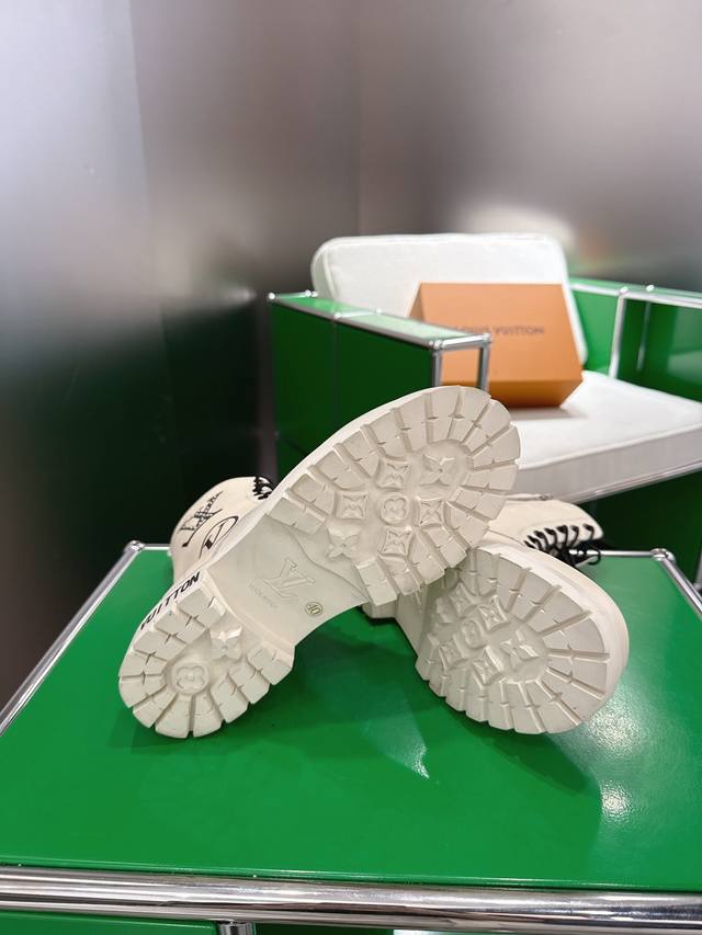 K021 Louis Vuitton 涂鸦系列情侣装侧拉链系带厚底 DDD 本款涂鸦铆钉承载军旅灵感和的旅行传承,为舒软牛皮革鞋面点缀金属链条和Monogram帆布制成的行李牌形状挂饰。Eva 外底拥有细致凸纹,厚实而不失轻盈。 DDD 鞋面:牛皮 DDD 内里垫脚:羊皮 DDD 鞋底:开模组合橡胶大底 DDD 码数:女35-39 40.41定做不退换 DDD 男40-44 45.46定做 DDD