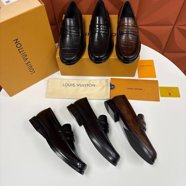 L家新品 Loui* 乐福鞋皮鞋 官方售价 Rmb,350 本款Major乐福鞋皮鞋 采用品牌标志性的 Damie 格子压纹牛皮 Monogram 老花牛仔布 进口细腻小牛皮 开边珠亮面皮革拼接打造 压纹设计更添层次,棋盘格元素经典又吸睛,轻松成为穿搭亮点。标志性L*V饰扣,是身份与品味的象征,点明品牌血统,让每一步都自带奢华气场。 鞋面饰同色系皮革带饰边 传统手缝鞋面,内里黑色水染小牛皮打造 脚感舒适亲肤 以潮流笔触升级传统设计。采用原版真皮大底前掌与后跟复合橡胶底片升级防滑性能提升舒适感。 无论是职场