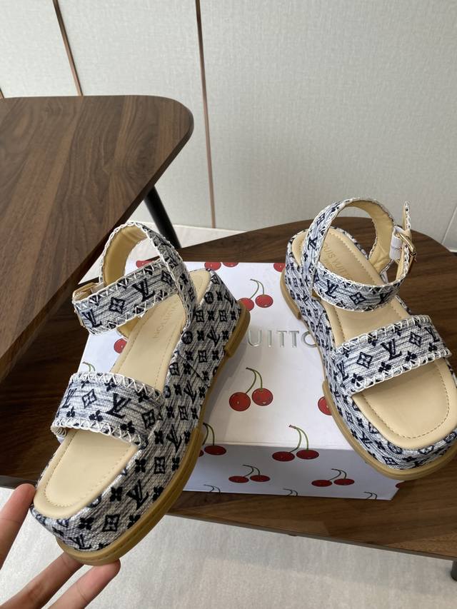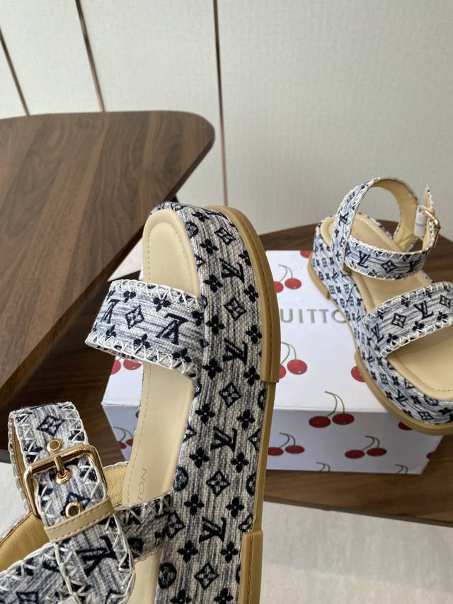 出厂: 独家顶级版本 L*V驴牌2025Vs夏季最新王炸爆款凉鞋系列 复古麻绳厚底凉鞋 2025拖鞋中Yyds! 超级好看,百搭耐看,高端大气...
