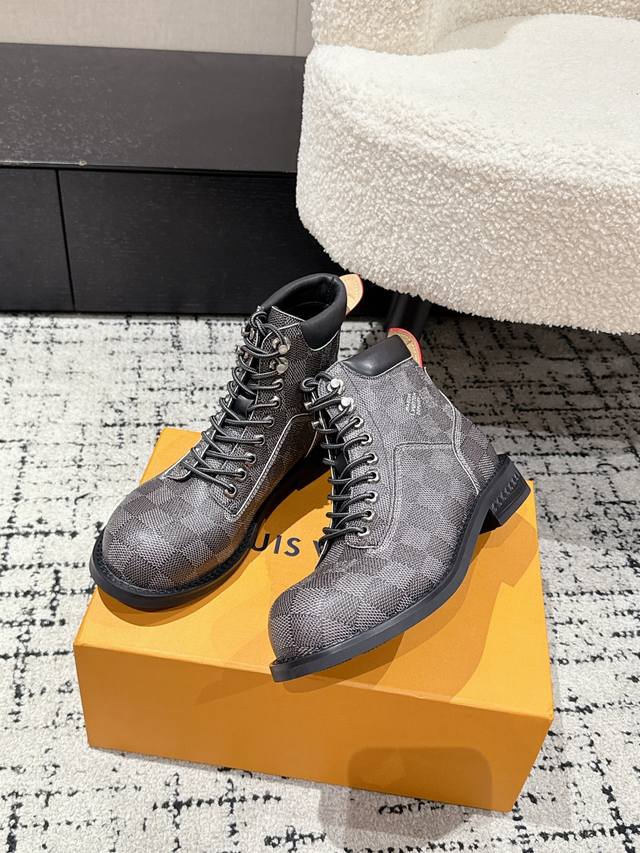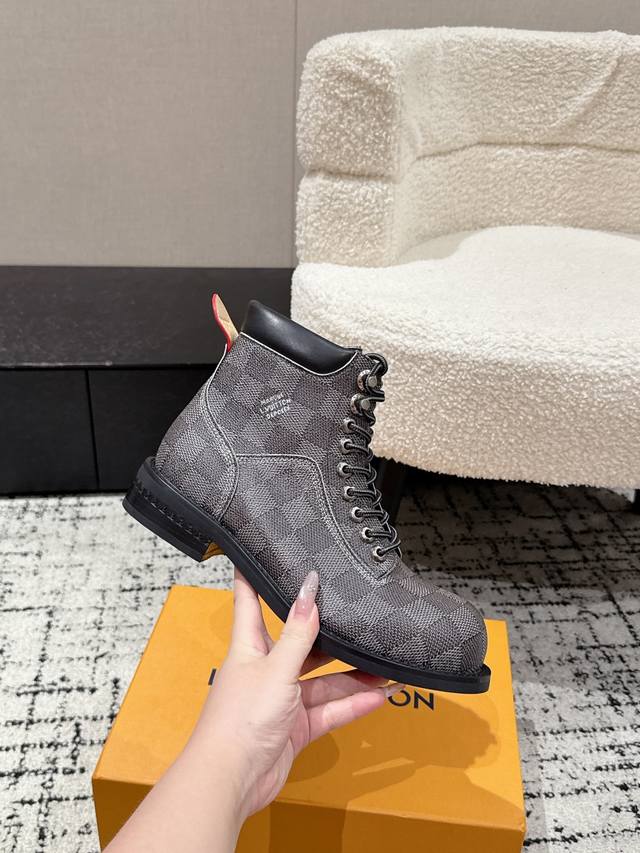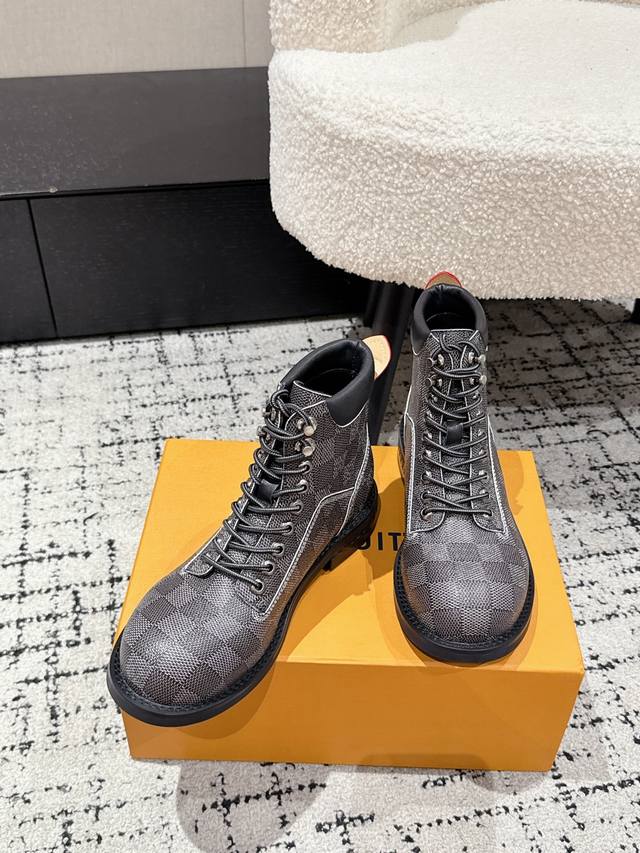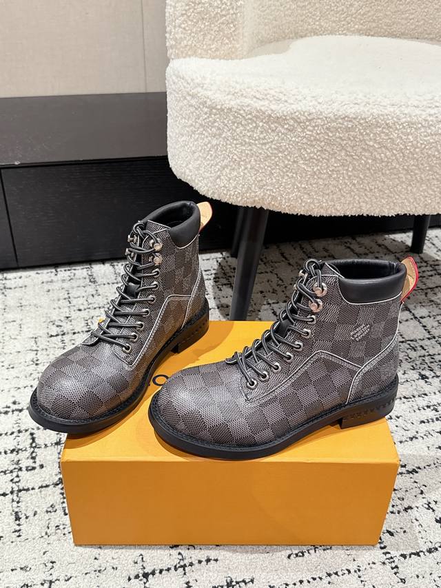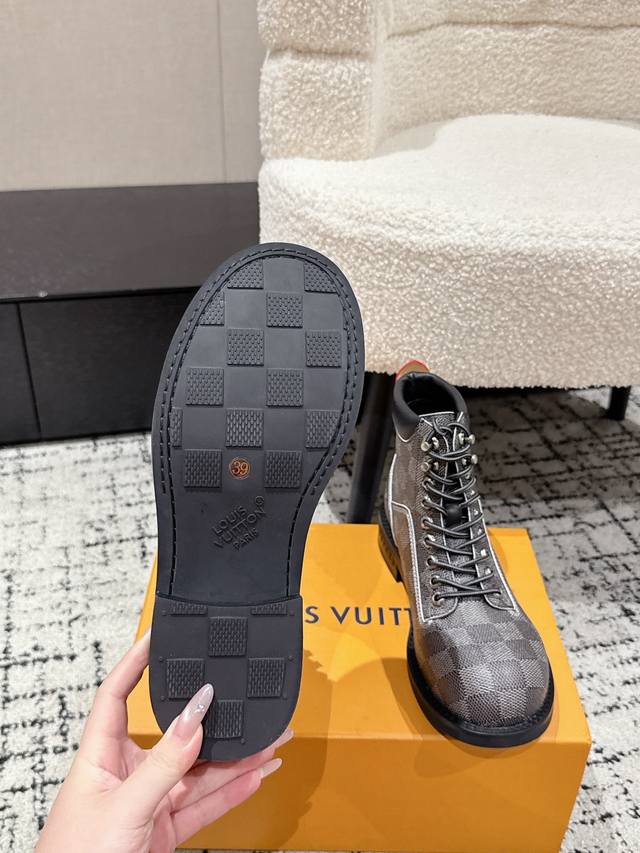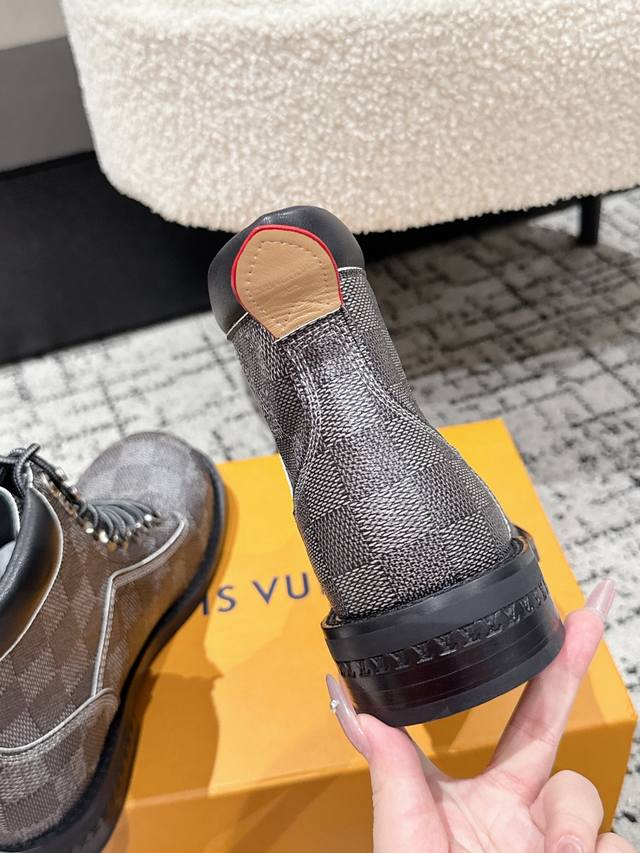 Louis Vuiteeon Lv 25 最新 Bubble 系带鞋情侣款厚底 小皮鞋 老花皮棋盘格 马丁靴 Lv Bubble 系带鞋取材光滑牛皮革,巧妙诠释Pharrell Williams和 Nigo于2025 秋冬秀场传递的日式工装美学。繁复对称的鞋面点缀撞色缝线和Monogram花卉形状孔眼,压印路易威登标识的皮革后袢致意皮具系列设计。 鞋面:老花牛皮 内里:牛皮 鞋底:原版开模Tpu橡胶大底 跟高:3.5Cm Size:#女35-40 40定做不退换 男39-46 45.46定做不退换