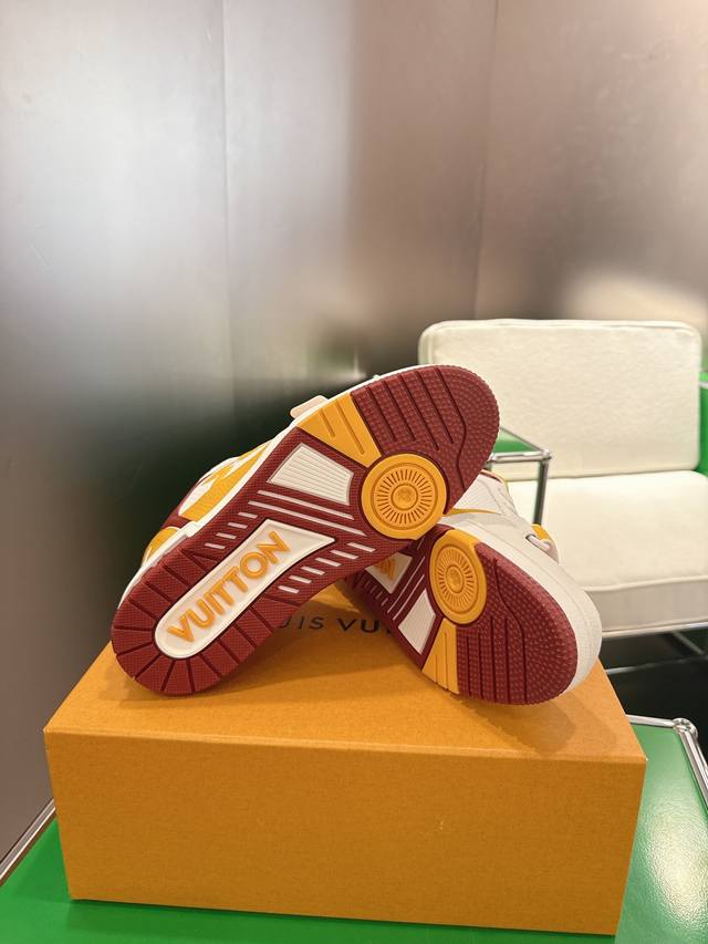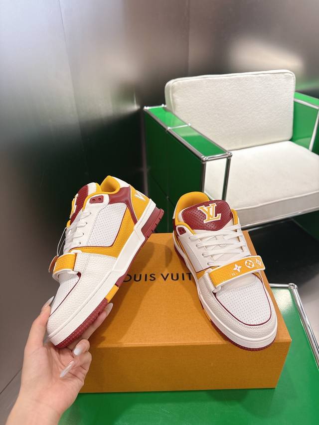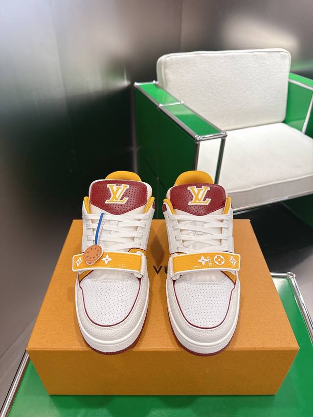 Louis Vuiton 路易威登 Trainer系列板鞋篮球鞋 板鞋 本款 Lv Trainer 运动鞋以穿孔牛皮革重绎经典设计,再借活力色调呼应大学校队运动