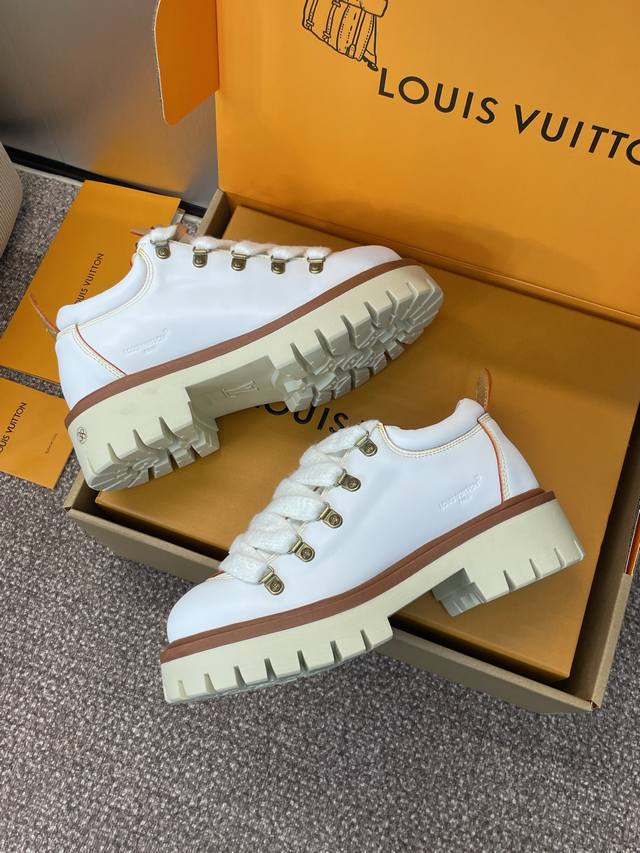 Louis Vuitto* 2025春夏高定系列 Remix情侣新款系带休闲运动徳比胖丁鞋 Lv字母Logo圆头厚底拼色登山老爹鞋