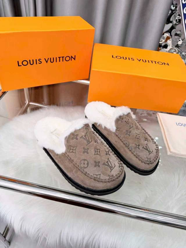 / Louis Vuitton路易威登秋冬新款羊毛鞋火爆上市,1:1高级定制,秒杀一切仿品,原版开模Logo装饰,既时尚又美观,面料:进口丝光牛京+压花,内里领口羊