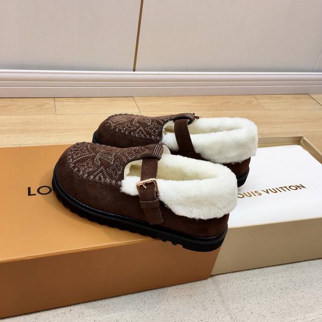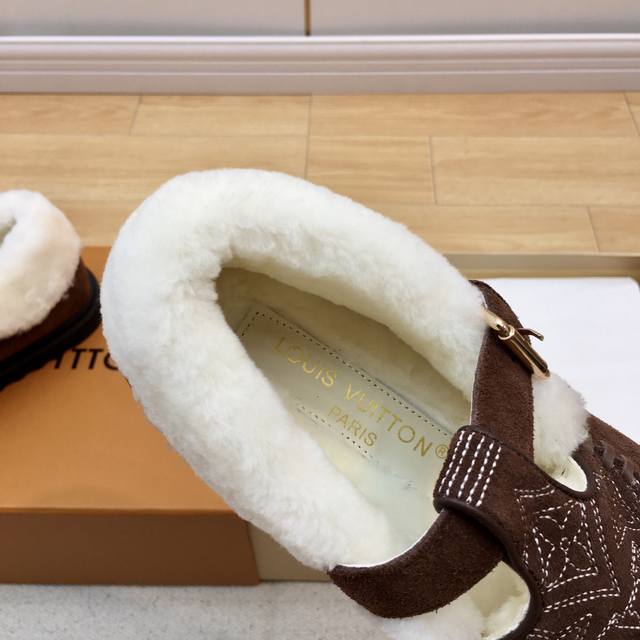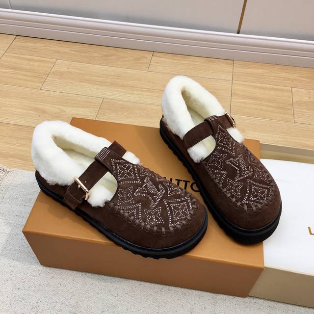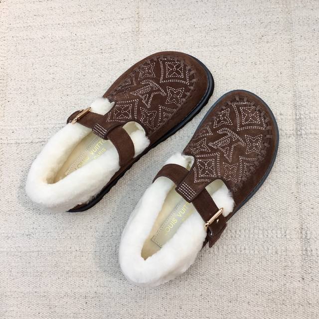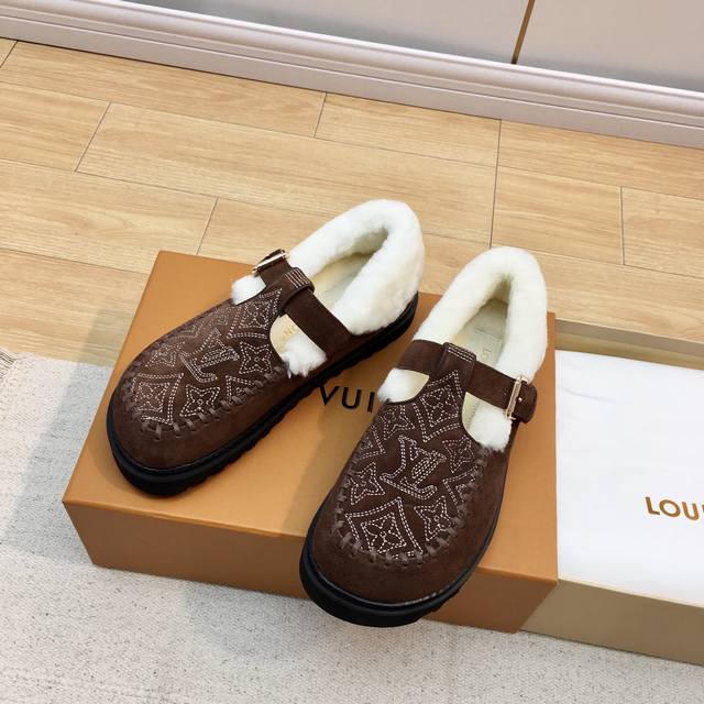 Louis Vuitton 羊毛厚底马丽珍鞋 DDD 秋冬新款!羊毛里超级保暖,上脚超级洋气,鞋身印花Logo低调品味。底厚4Cm,瞬间拉长腿型。闭眼入、顶级品质 DDD 鞋面真皮毛一体,质感细腻媲美Zp!内里垫脚原版一致羊毛。原版开模Tpu大底,品质一如既往,细节无可挑剔。请区分于市面廉价货 DDD Size:35-41 全套包装 DDD 40、41定制不退不换 DDD