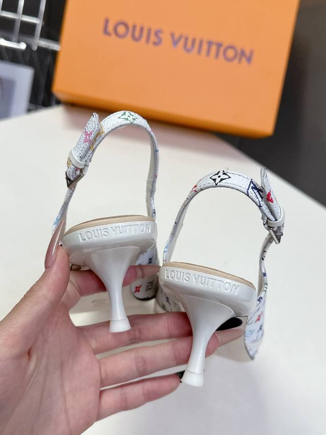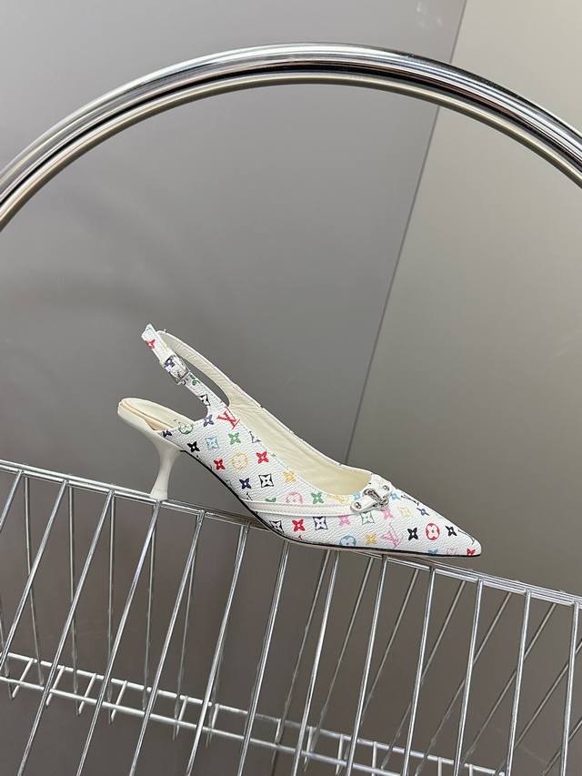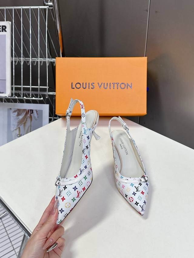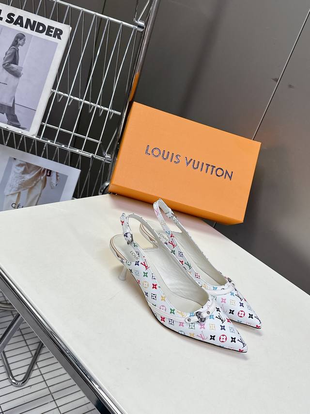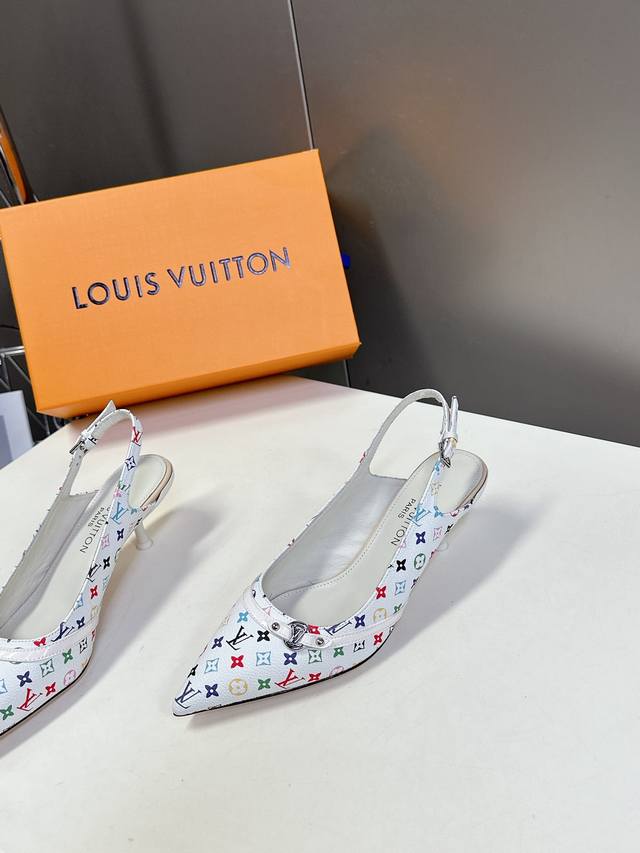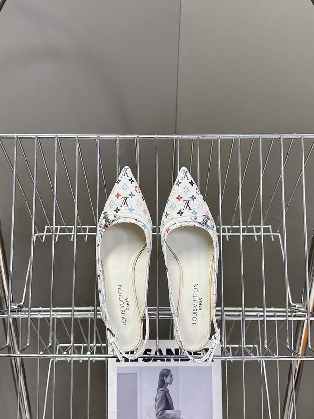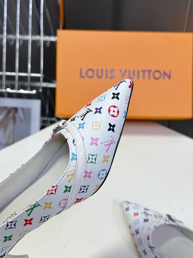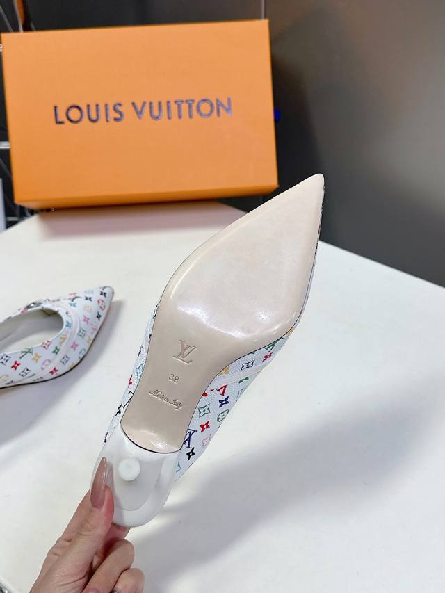 Louis Vuitton 路易威登春夏玛丽珍猫跟时装尖头鞋 春夏秀场出镜率最高的一款单品 超多名模上脚 简约大方非常百搭 鞋面采用原版牛皮; 全皮包裸纯手工缝纫鞋面,Lv彩色老花标识点缀 内里采用水染牛皮,透气舒适耐磨 意大利真皮大底 跟高4.5Cm Size:35 40