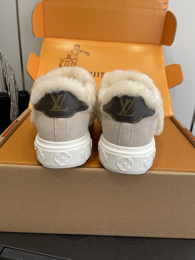 Louis Vuitton 路易威登 秋冬新品 休闲板鞋 小白鞋 毛里 DDD 本款Time Out运动鞋拼接牛皮革与 Monogram 丹宁布 与当季皮具系列遥相呼应 丹宁布行李牌通过皮革饰带固定于鞋面 彰显路易威登的旅行传承 耀目铭纹孔眼与鞋舌处品牌标识压纹增添考究细节 DDD 鞋面原版牛反绒 羊毛 DDD 内里羊毛 DDD 原版开模大底 DDD 码数:35-40 40定做 DDD