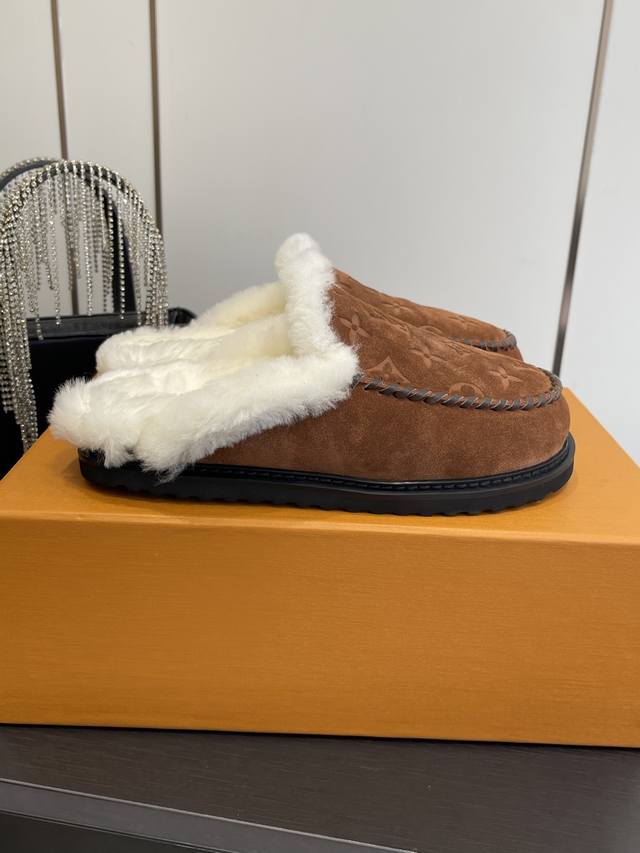 Louis Vuitton 路易威登 25新品滑雪系列 雪地靴 毛毛半拖 以绒面牛皮革呈现丝绒质感 搭配柔暖羊毛皮内衬 鞋面的 字母缝线和可调节鞋带的铭纹搭扣共