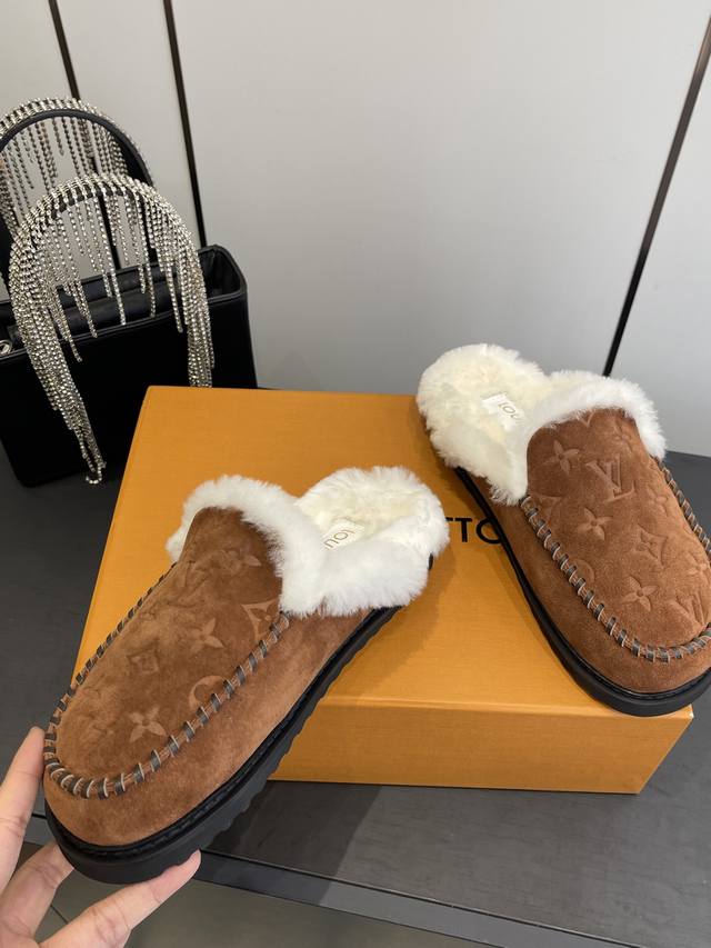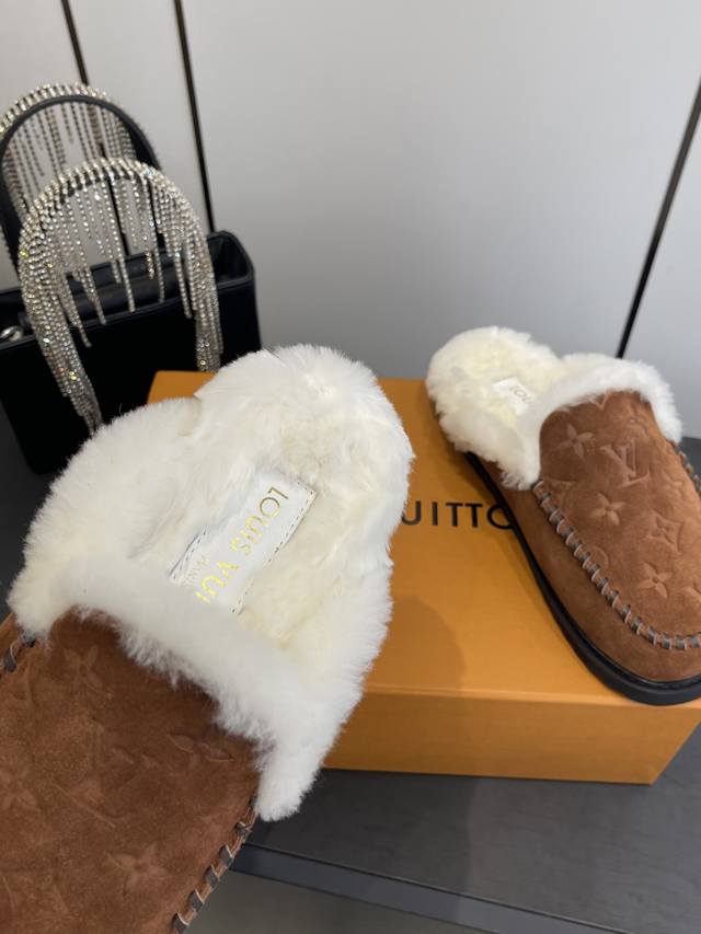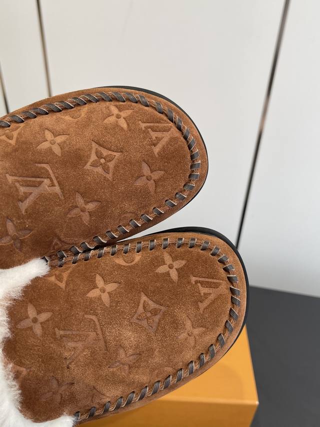 / Louis Vuitton 路易威登 25新品滑雪系列 雪地靴 毛毛半拖 以绒面牛皮革呈现丝绒质感 搭配柔暖羊毛皮内衬 鞋面的 字母缝线和可调节鞋带的铭纹搭扣共