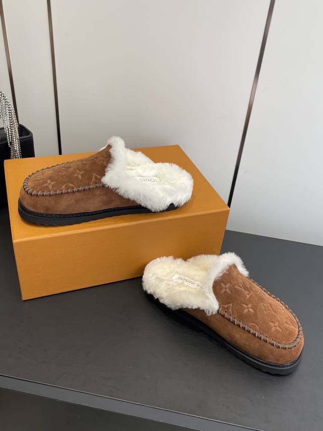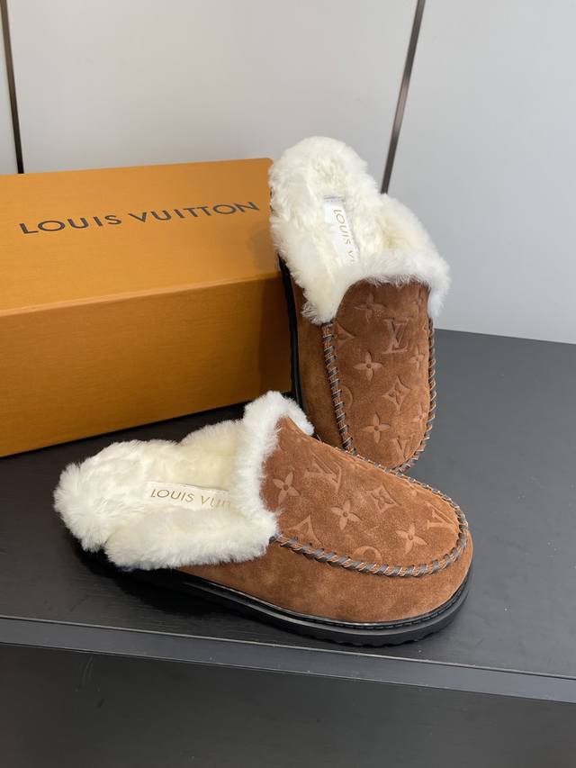 Louis Vuitton 路易威登 25新品滑雪系列 雪地靴 毛毛半拖 DDD 以绒面牛皮革呈现丝绒质感 搭配柔暖羊毛皮内衬 鞋面的 字母缝线和可调节鞋带的铭纹搭扣共同丰富品牌细节 轻盈微型外底完善潮流格调 DDD 面料采用原版进口头层牛皮 DDD 内里垫脚羊毛 DDD 原版开模大底 DDD 码数:35-39 40.41定做 DDD