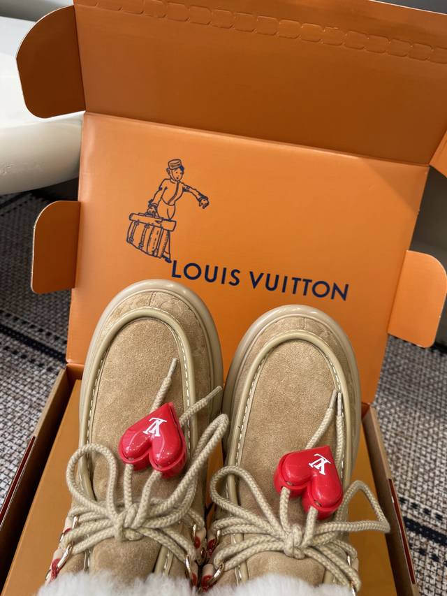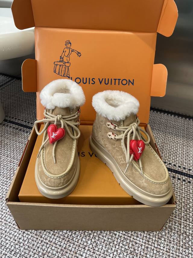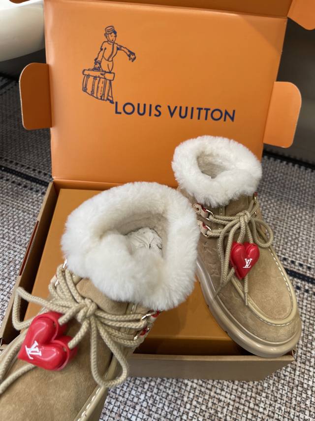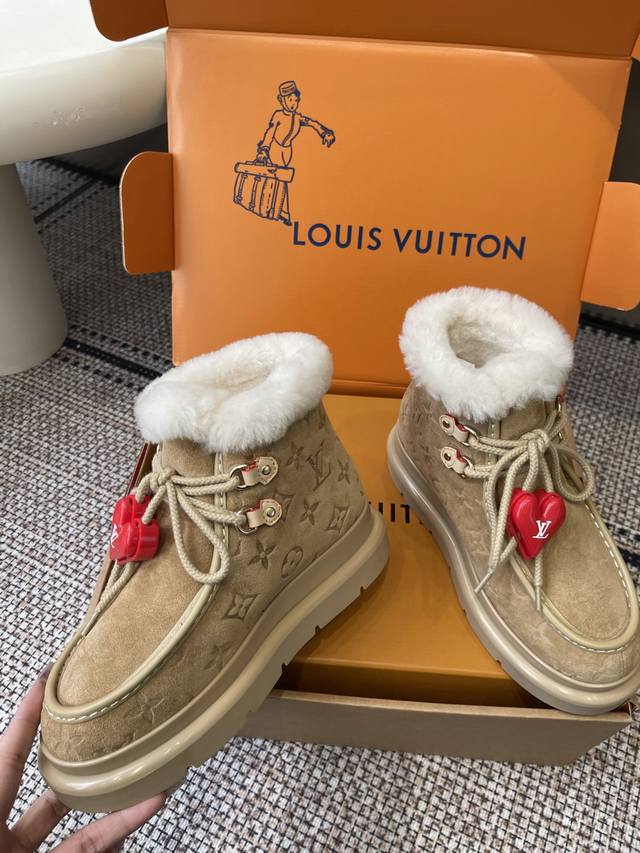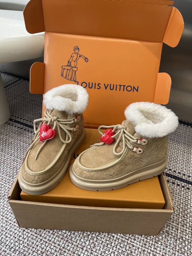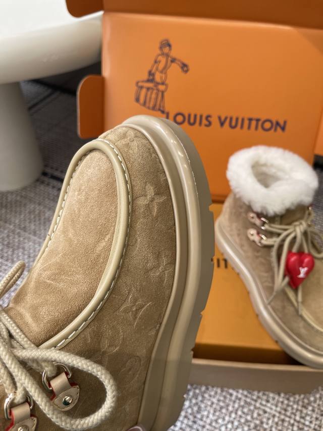 Louis Vuitton 路易威登 25新品滑雪系列 雪地靴 配饰60 DDD 以绒面牛皮革呈现丝绒质感 搭配柔暖羊毛皮内衬 鞋面的 字母缝线和可调节鞋带的铭纹搭扣共同丰富品牌细节 轻盈微型外底完善潮流格调 DDD 面料采用原版进口头层牛皮 Ddd 内里垫脚羊毛 Ddd 原版开模大底 Ddd 码数:35-39 40.41定做不退换 DDD