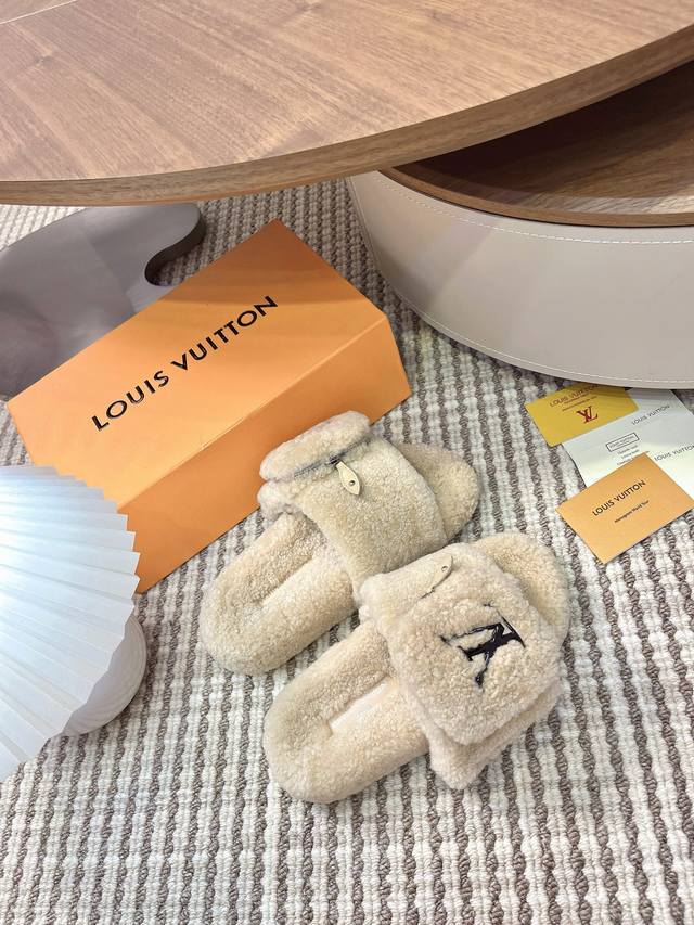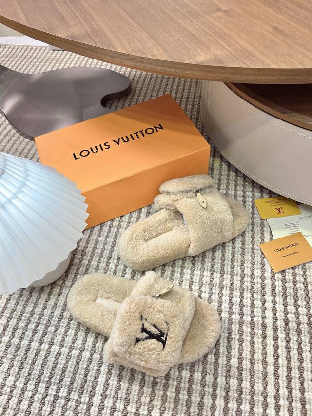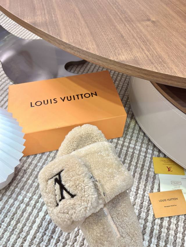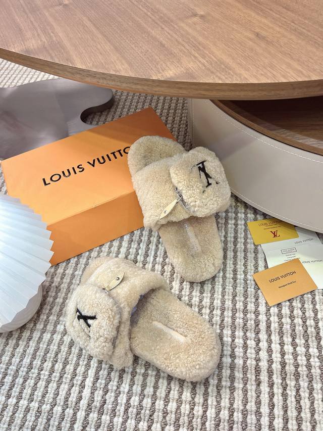 Louis Vuitton 2025 秋冬新款时尚魔术贴拉链包羊羔毛女拖鞋 Lv字母Logo平底圆头拼色露趾居家鞋 鞋面:进口100%羊羔毛 大底:原版开模防滑耐磨橡胶大底 码数:35-41 40.41定制不退换 鞋面:羊毛 内里垫脚:羊毛 鞋底:开模防滑橡胶大底 码数:35-39 40 41 42定做不退换